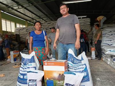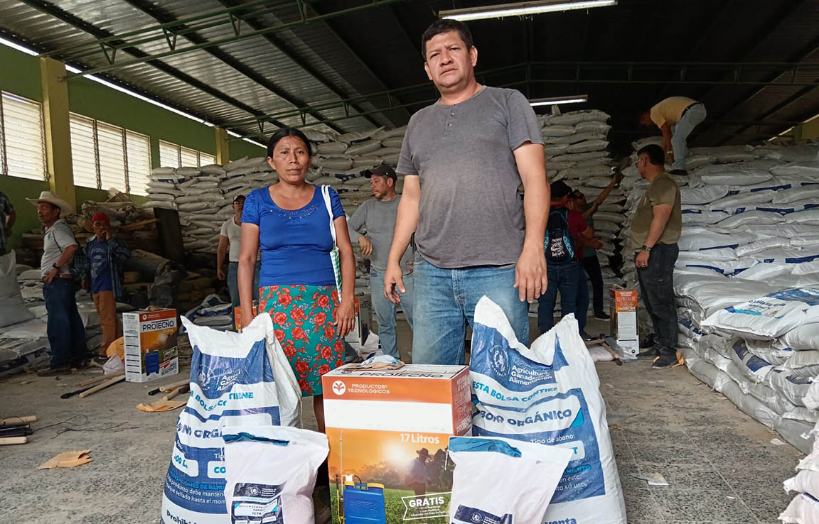 Las entregas se realizan de forma simultánea. En Panajachel, Sololá, se distribuye abono orgánico y semillas de hortalizas. Por su parte, en Camotán, Chiquimula las familias reciben bombas de aspersión, semillas de hortalizas y semillas de maíz.