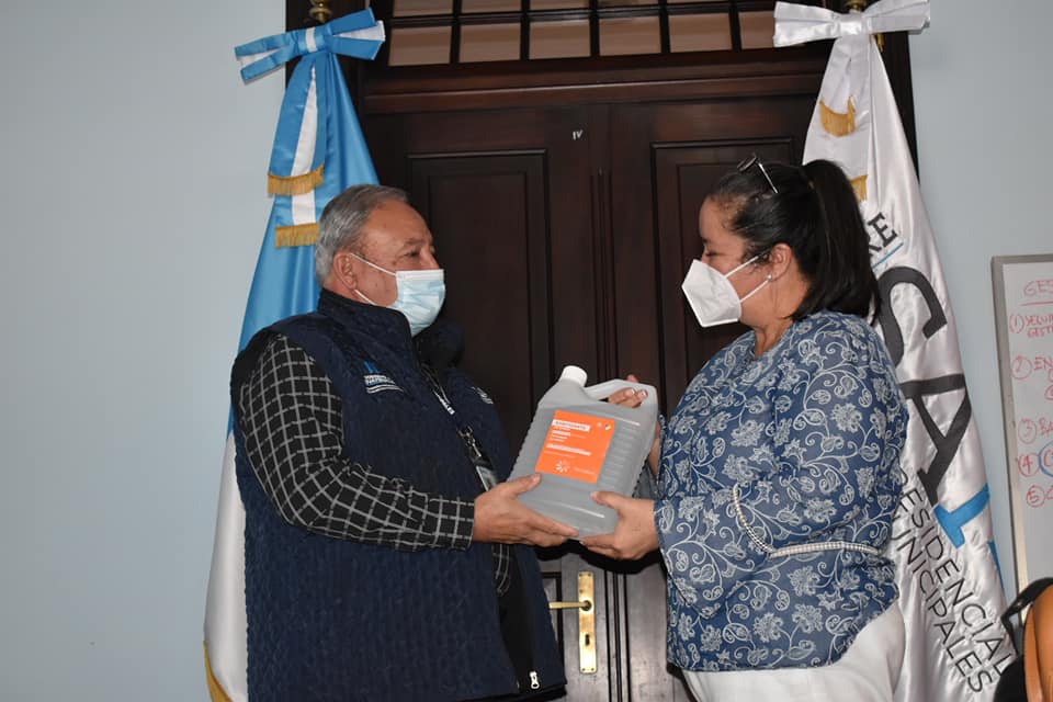 El director de Gestión de la Comisión Enio Domínguez, atendió a la alcaldesa en el seguimiento a sus solicitudes y realizó una entrega de alcohol en gel al 70%, la misma constituye una donación que realizara la inciativa privada meses atrás al Gobierno de la República para el apoyo a las municipalidades.