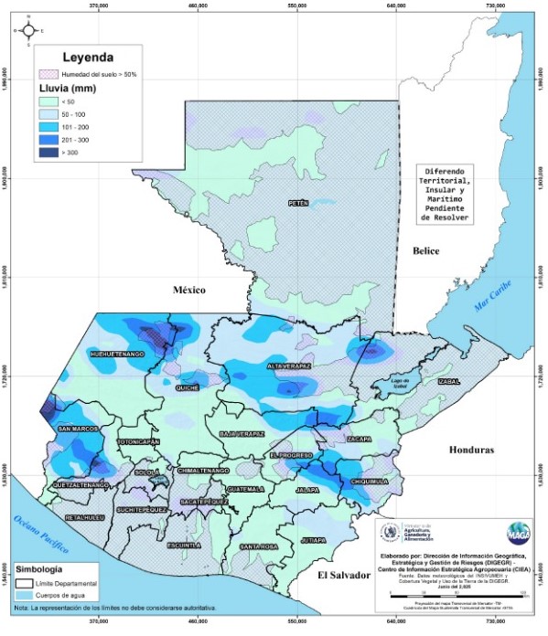 Debido a las lluvias de estos días, se produjo un incremento en la saturación de suelos en zonas agrícolas, por lo que el Ministerio de Agricultura, Ganadería y Alimentación (MAGA), emitió la Alerta Agropecuaria No. 8, en la cual se hacen recomendaciones para los sectores agrícola y pecuario del país.