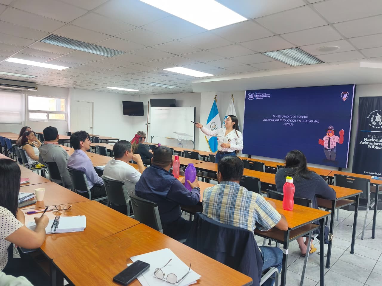 En esta ocasión, personal del Instituto Nacional de Administración Pública (INAP), participó en una capacitación donde se abordaron temas fundamentales como la Ley y Reglamento de Tránsito, así como los efectos de la alcoholemia, drogas y fármacos en la conducción.