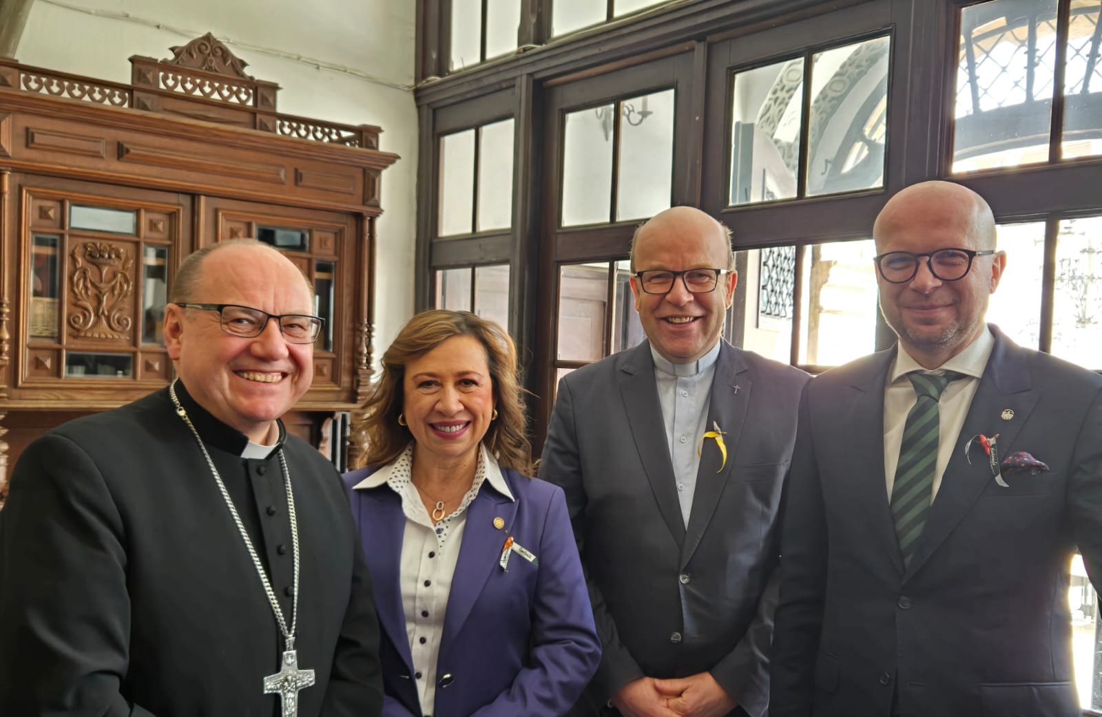 Como parte de las actividades, la comunidad local participó en la elaboración de una alfombra de aserrín y flores en la Iglesia de Santa Elizabeth de Wrocław, lo que generó un espacio de diálogo e intercambio cultural entre ambos pueblos.