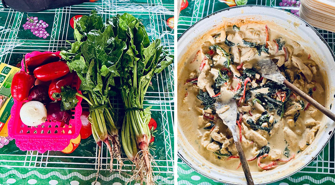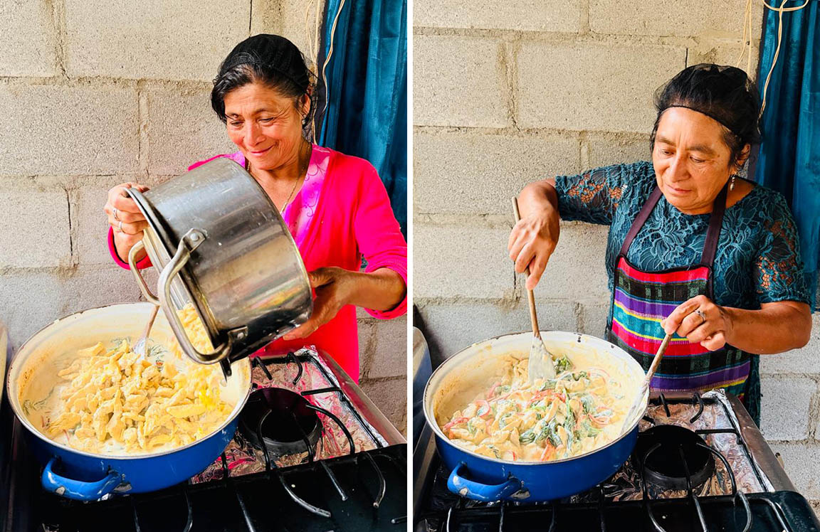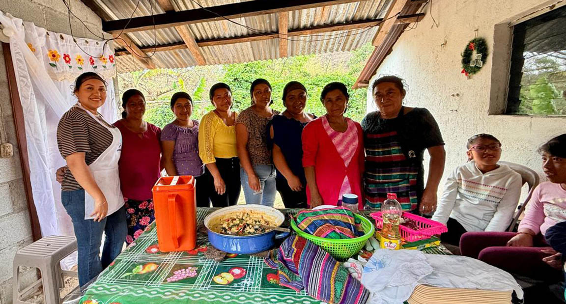La actividad permitió que ocho mujeres de la localidad, aprendieran la preparación de crema de pollo con espinaca, un platillo diseñado para aportar nutrientes esenciales a la dieta diaria de los hogares rurales.