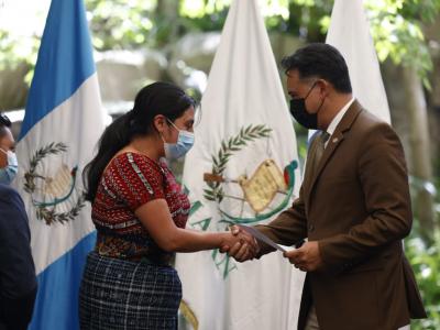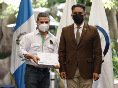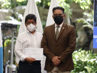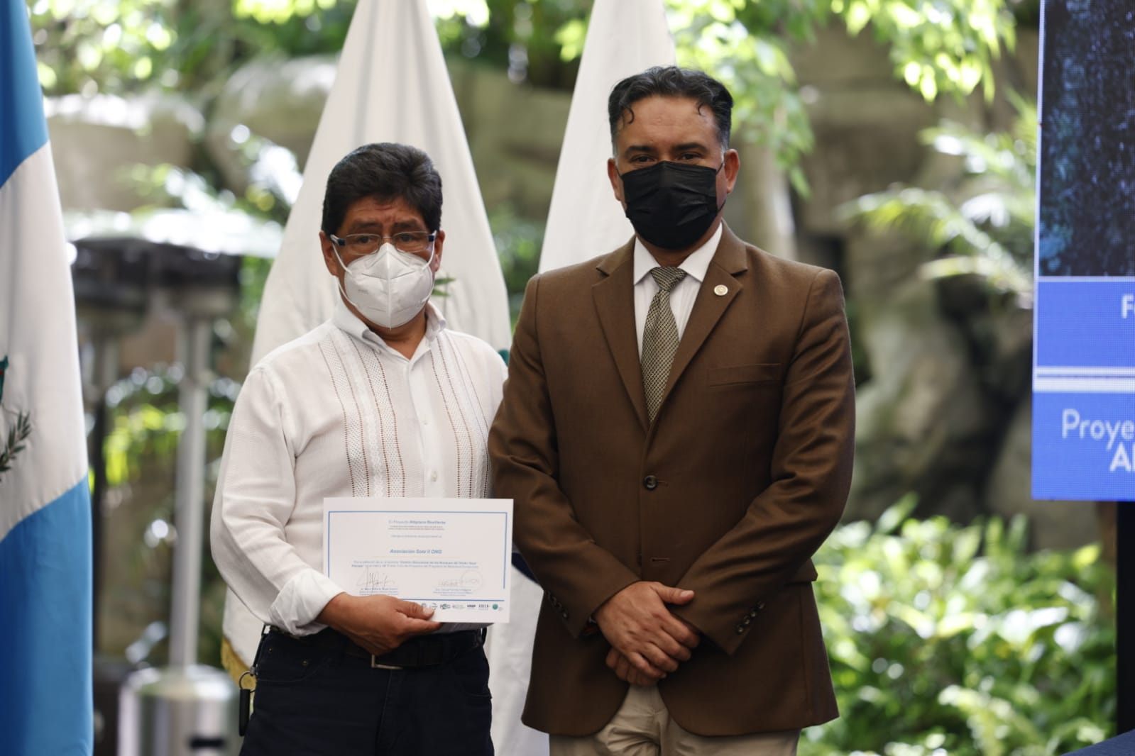 Mario Rojas Espino, ministro de Ambiente y Recursos Naturales (MARN) y presidente del Comité Directivo del Proyecto Altiplano Resiliente "Fortalecimiento de la resiliencia de los medios de vida ante el cambio climático en las cuencas altas del altiplano de Guatemala", entregó hoy donaciones económicas a seis organizaciones que implementarán acciones de adaptación basadas en ecosistemas en el altiplano occidental.