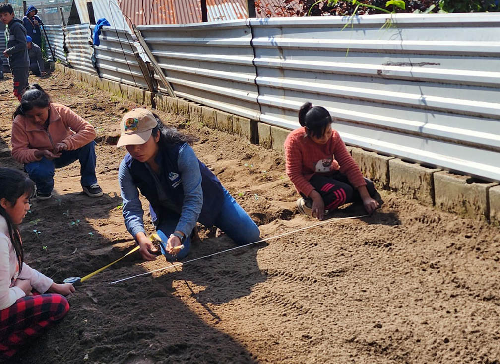 Alumnos de Totonicapán aprenden de agricultura en huerto escolar