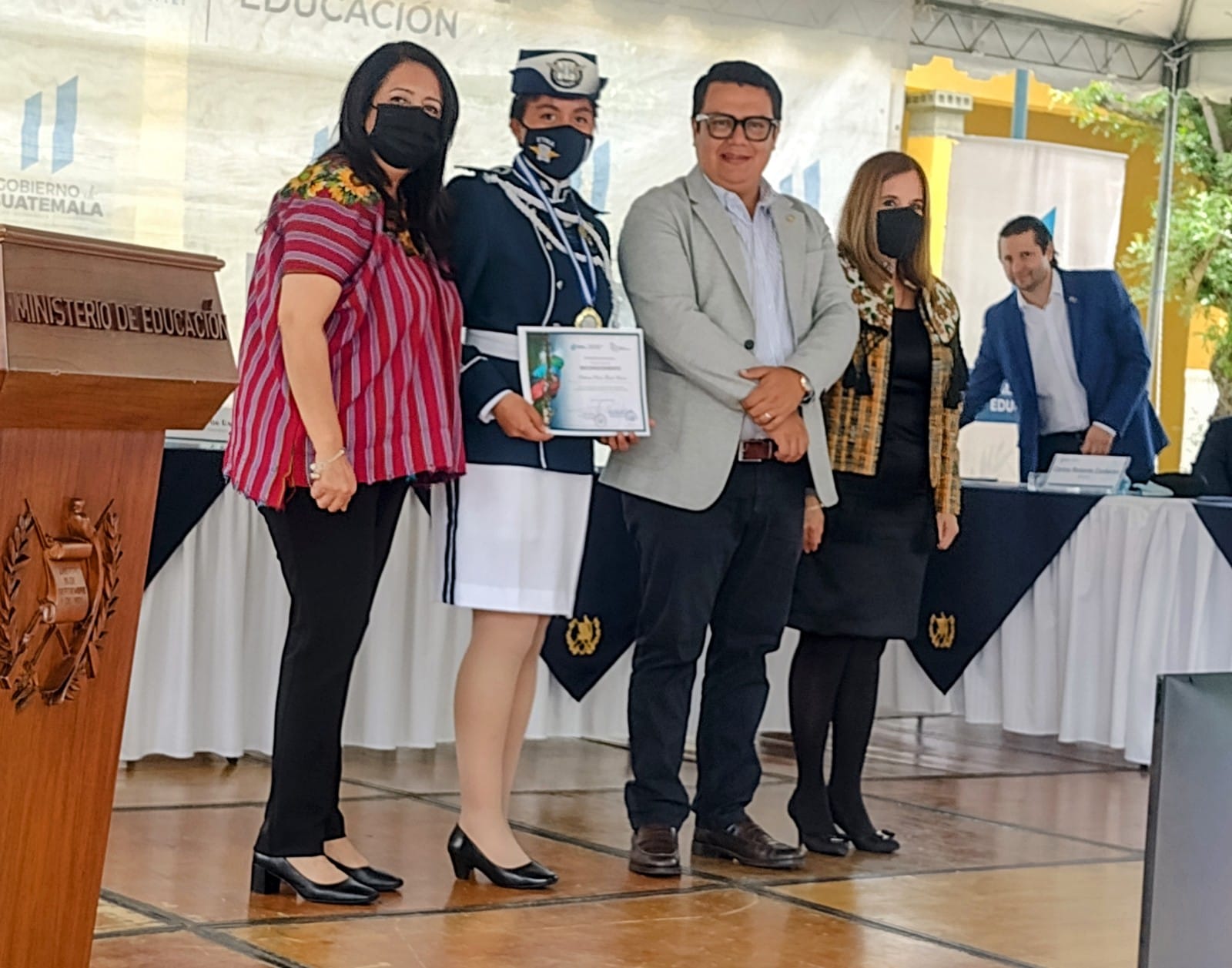 Esta condecoración conferida por la ministra de Educación Claudia Ruíz Casasola acompañada del gobernador del departamento de Guatemala y presidente del Comité Pro-Festejos, Jorge Luis Gramajo Escobar, fue otorgada a ocho alumnos de diferentes establecimientos cívico-militares de la ciudad capital, quienes destacan por su excelencia académica, deportiva y artística: