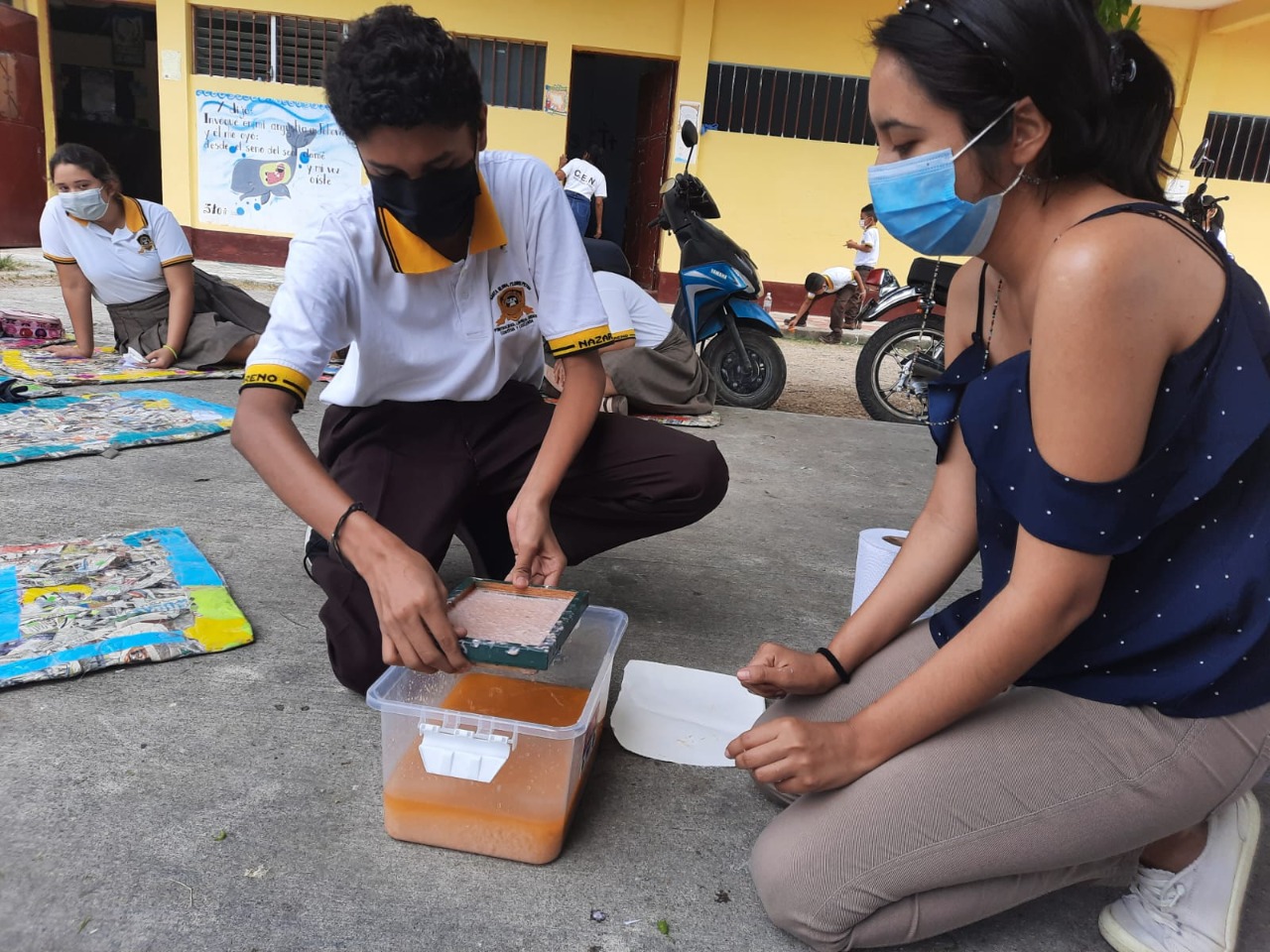 En Santa Elena, Flores, Petén, personal técnico de la Autoridad para el Manejo y Desarrollo Sostenible de la Cuenca del Lago Petén Itzá (AMPI), impartieron un taller sobre la elaboración de papel artesanal, el cual fue dirigido a estudiantes del Colegio Nazareno, quienes participan en el diplomado Guardianes del Lago Petén Itzá.