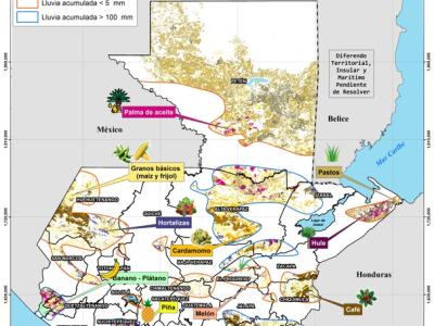 Según el pronóstico del Instituto Nacional de Sismología, Vulcanología, Meteorología e Hidrología (INSIVUMEH), se esperan lluvias parciales en el territorio nacional. Los análisis agrometeorológicos evidencian la vulnerabilidad de los cultivos de pastos, café, granos básicos y hortalizas en los departamentos de Petén, Izabal, Zacapa, Chiquimula y Huehuetenango. Los bajos acumulados de lluvia previstos, indican condiciones deficitarias que podrían afectar el desarrollo productivo.