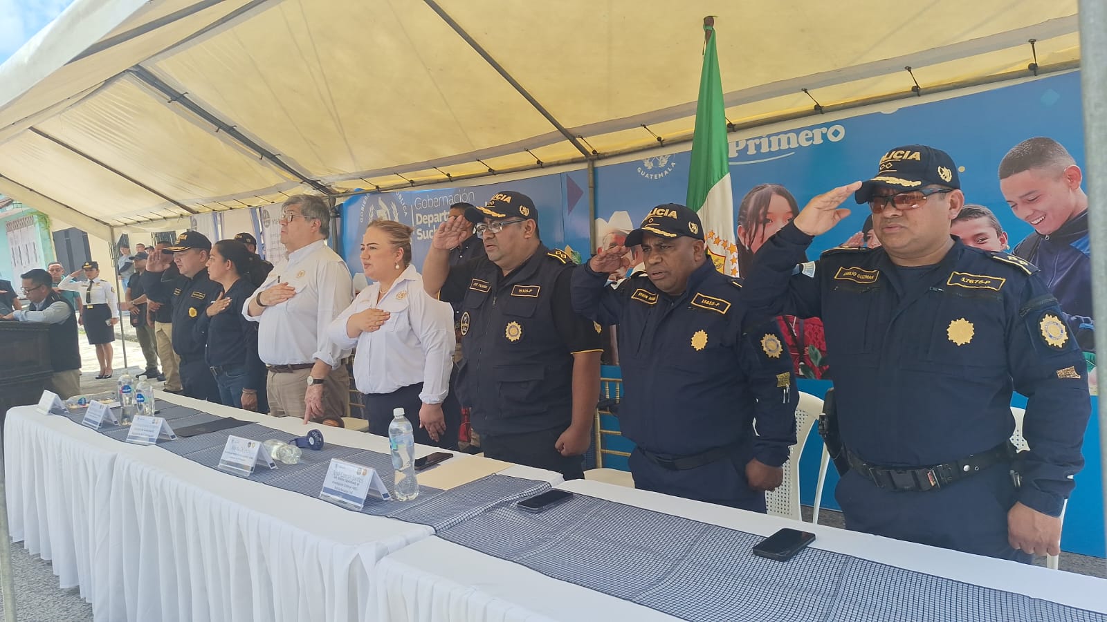 La inauguración contó con la presencia del ministro de Gobernación, Francisco Jiménez; la viceministra de Prevención de la Violencia y el Delito, Mayda de León; la gobernadora departamental de Suchitepéquez, Licda. Mariana Enriquez; y el director general de la PNC, Comisario General David Custodio Boteo. Todos coincidieron en destacar el impacto positivo que tendrá este centro para el desarrollo local y la modernización del sistema de seguridad ciudadana.