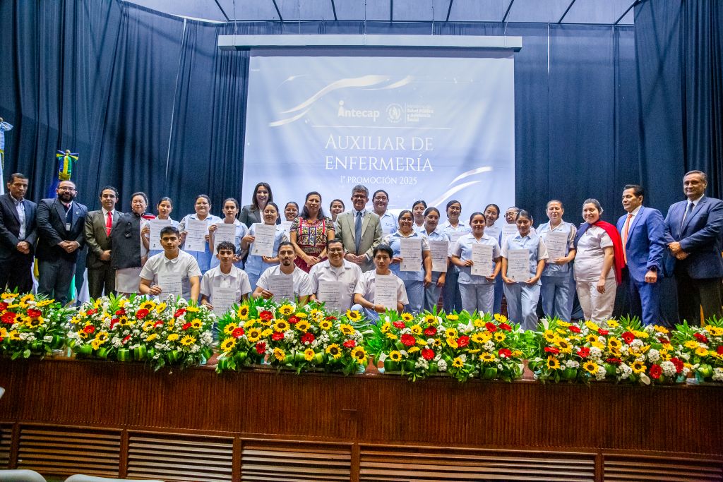 El Ministerio de Salud Pública y Asistencia Social participó en el acto de graduación de la primera promoción de auxiliares de enfermería del Instituto Técnico de Capacitación y Productividad (INTECAP), orientado a fortalecer el recurso humano de salud en el país.