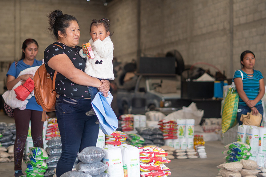 Las porciones distribuidas incluyen: arroz, mosh, azúcar, aceite, sal, Incaparina, Maseca y frijol.