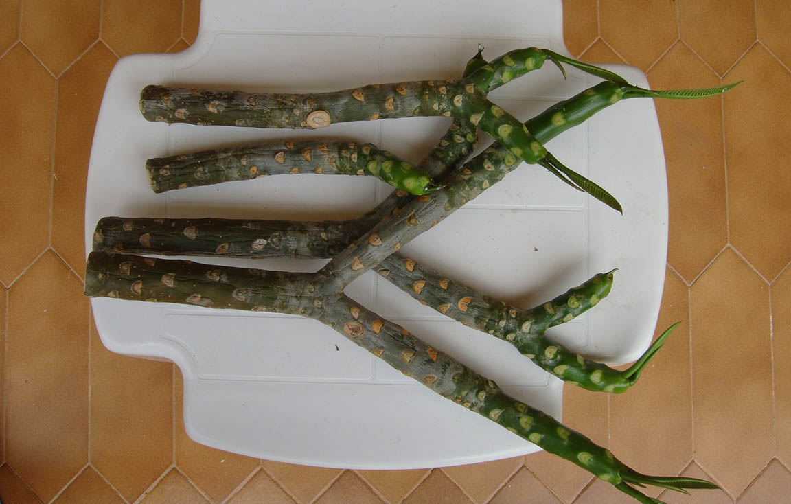 Los procesos para hacer un esqueje inician con la selección de una rama sana y vigorosa de la planta madre. Se debe cortar un fragmento que mida entre 10 y 20 cm de longitud, con al menos uno o dos nudos.