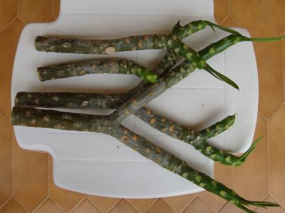 Para los esquejes de raíz, se utiliza un trozo de raíz para generar una nueva planta, por ejemplo: frambuesas y moras suelen propagarse de esta manera.
