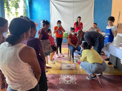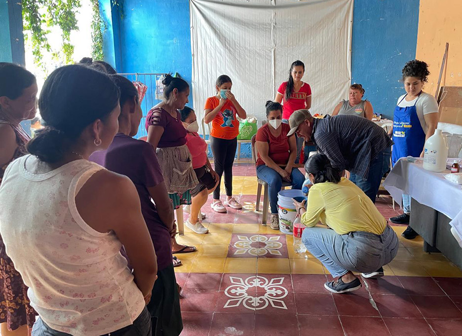 Previamente al desarrollo del taller, el personal de Hogar Rural (HR) ofreció una capacitación relativa a las normas básicas y de seguridad para la preparación apropiada de cloro y los materiales que se utilizan: caretas, mascarillas, guantes, embudo, paleta de madera, cucharas medidoras, recipientes de plástico, palanganas, gabachas, limpiadores, agua desmineralizada o de chorro, hipoclorito, bicarbonato, soda caustica y fragancia.