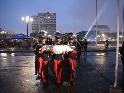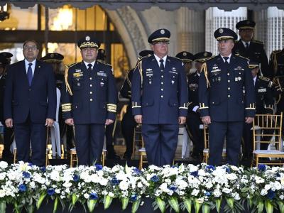 Los cadetes de la Escuela Politécnica de Guatemala, con la gallardía que los caracteriza, fueron los encargados de arriar el lábaro patrio y resguardarlo en e Palacio Nacional de La Cultura.