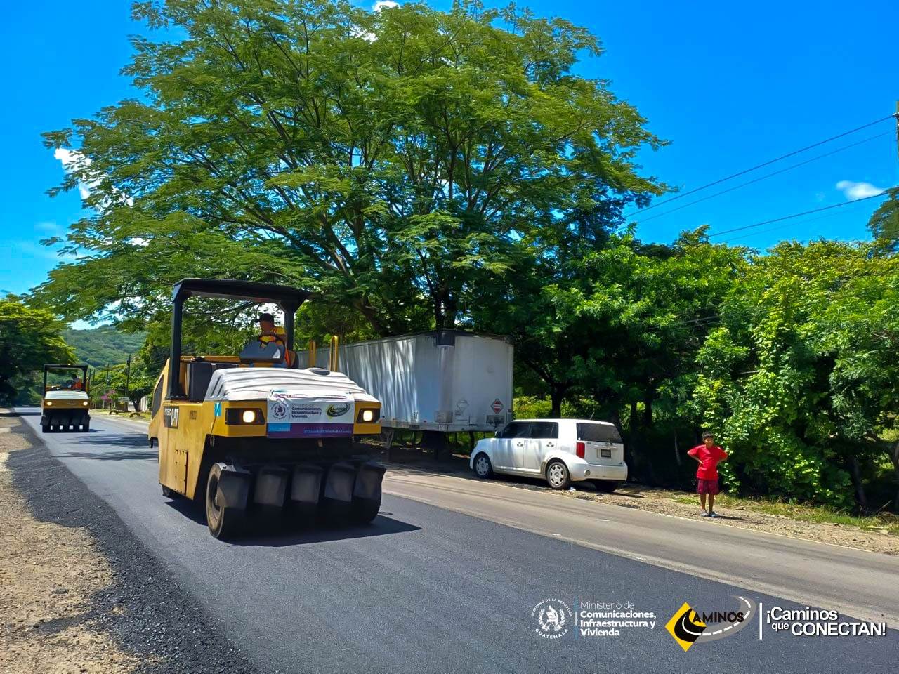 • Aplicación de segunda capa de mezcla asfáltica en el tramo km 162 al km 163.2, en la vía que conecta Asunción Mita con San Cristóbal Frontera.