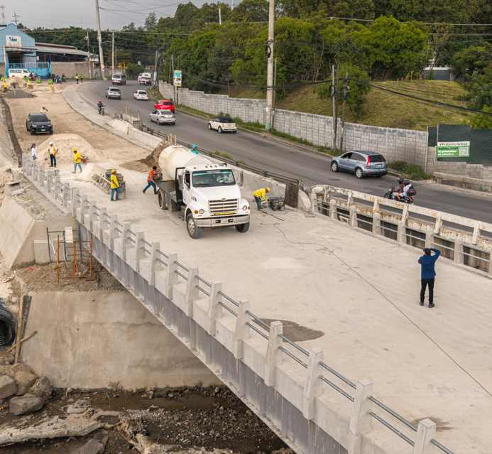 Con la meta de mejorar la circulación y reducir el congestionamiento diario que enfrentan miles de usuarios en el sur del departamento de Guatemala, la Unidad Ejecutora de Conservación Vial (Covial), avanza en la construcción de un nuevo puente paralelo al existente Tubac.