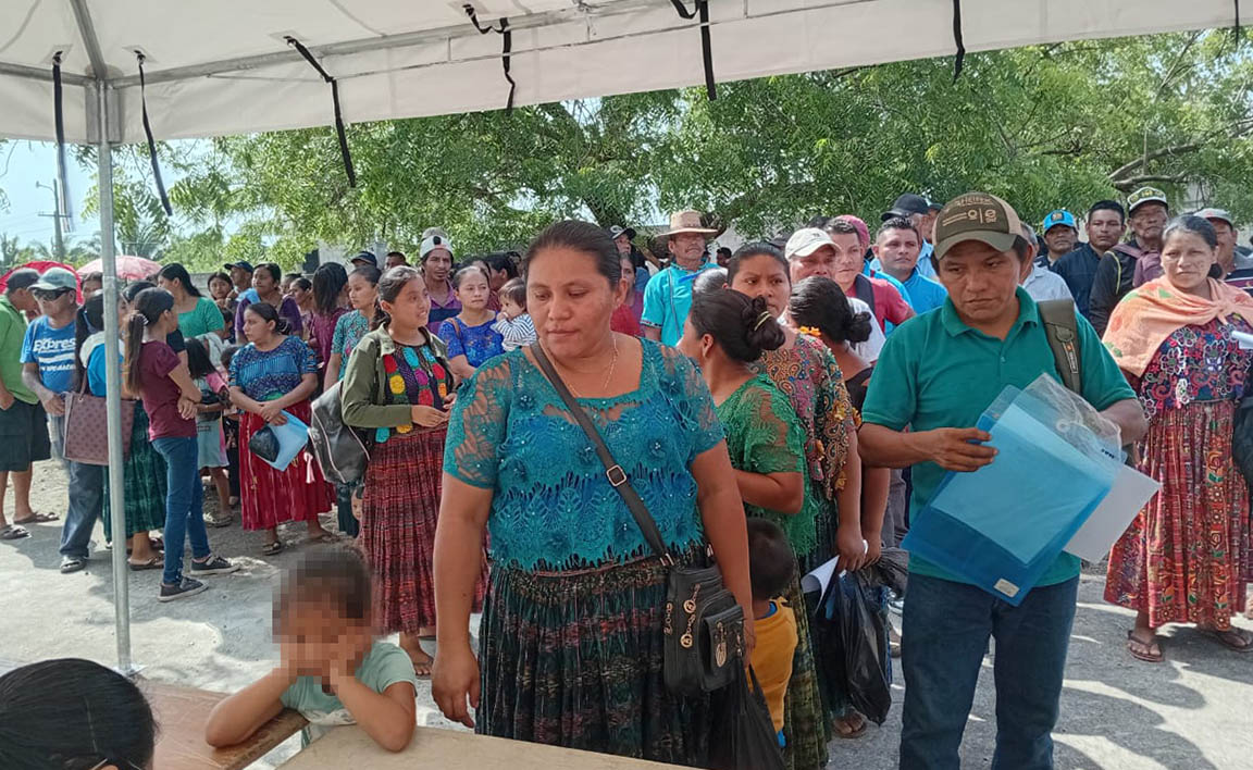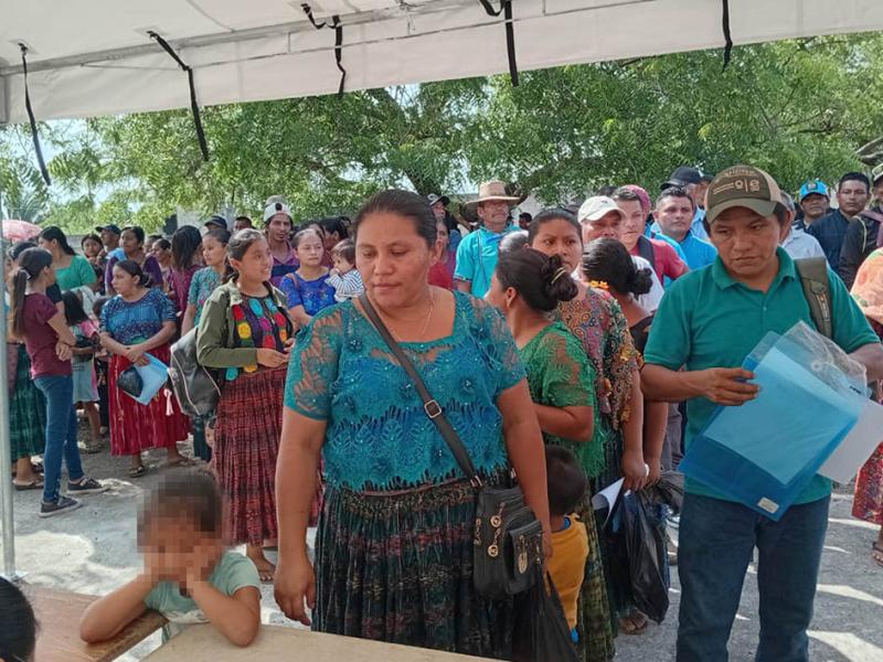 Posteriormente, los beneficiarios firman la planilla y entregan una copia de su Documento Personal de Identificación (DPI) en las mesas atendidas por instituciones que conforman la Comisión Nacional de Seguridad Alimentaria y Nutricional (CONASAN). Tras completar este proceso, reciben un ticket con el que pueden retirar sus alimentos.