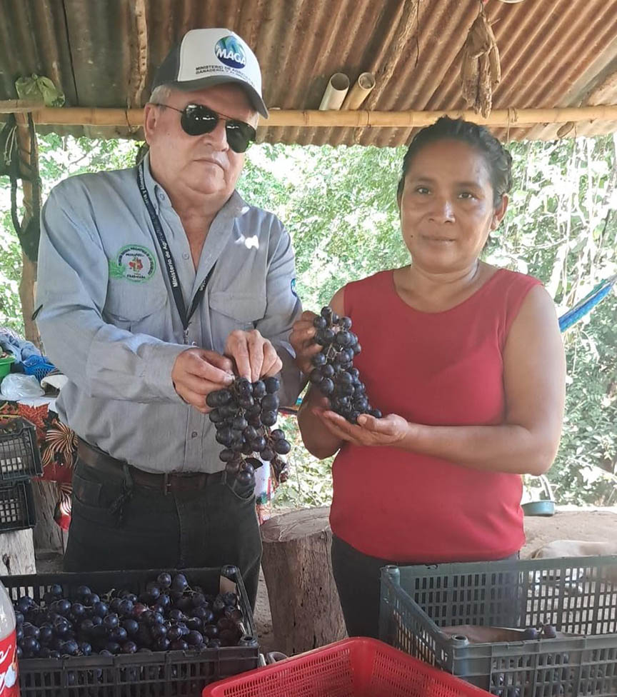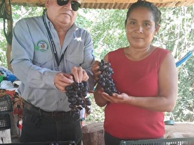 En apoyo a un productor con el manejo de un viñedo, un equipo de la sede departamental del Ministerio de Agricultura, Ganadería y Alimentación (MAGA), visitó el área de cultivo, ubicada en la aldea El Jute, del municipio de Usumatlán, Zacapa, para participar en el último día de la cosecha y recolección de la uva.