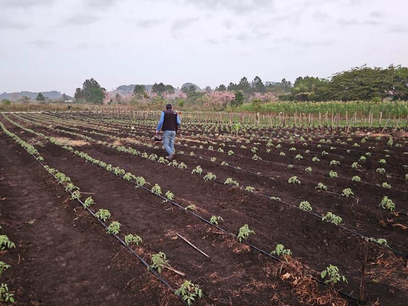 Con el objetivo de fortalecer la producción agrícola y garantizar cultivos saludables, técnicos agrícolas del Ministerio de Agricultura, Ganadería y Alimentación (MAGA), brindaron asistencia técnica a un productor de tomate en la comunidad de Boca del Monte, municipio de Dolores, Petén.