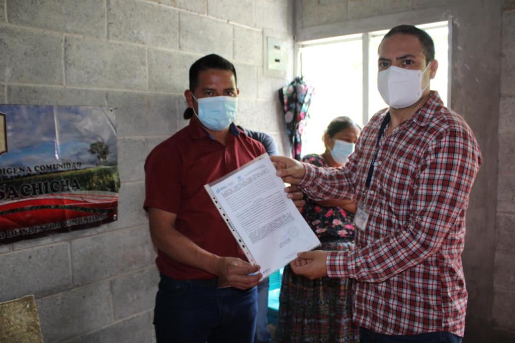 Uno de los finiquitos fue entregado a la Asociación de Desarrollo Indígena Comunidad Cerro Lindo Sachichá, que ejecutó el proyecto: Fortalecimiento de la producción de maíz en la Aldea Playitas, Chisec, por un monto de Q1 millón 019 mil 370.