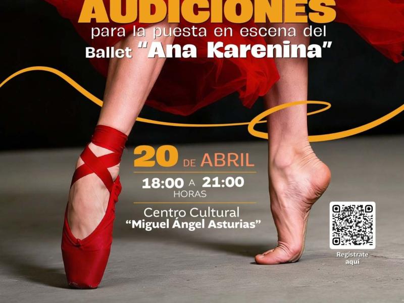 Esta cartera, a través del Centro Cultural «Miguel Ángel Asturias», abre la convocatoria para integrar la puesta en escena del ballet “Ana Karenina”, dirigida por el maestro Antonio Luissi.
