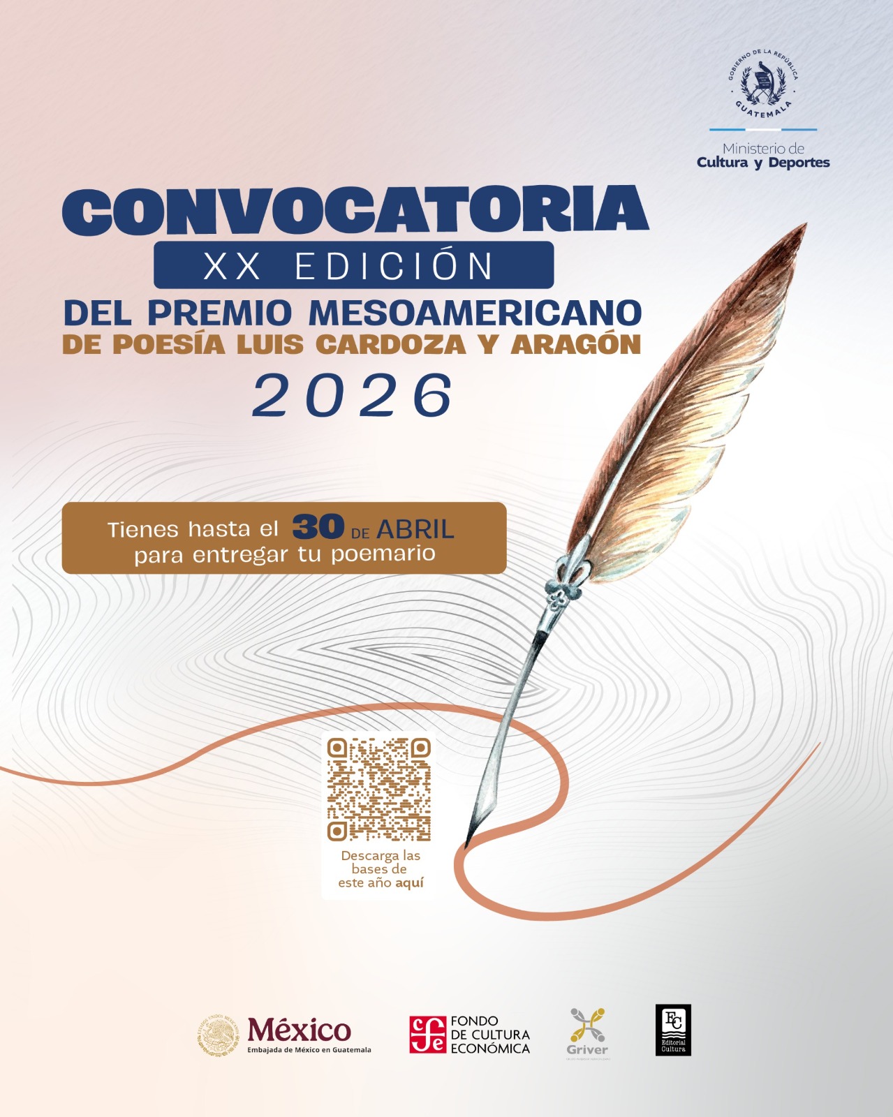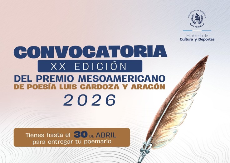 La recepción de obras para optar al Premio Mesoamericano de Poesía «Luis Cardoza y Aragón» continúa abierta hasta el 30 de abril, ahora con un incremento en la dotación económica.