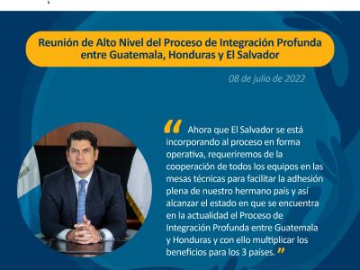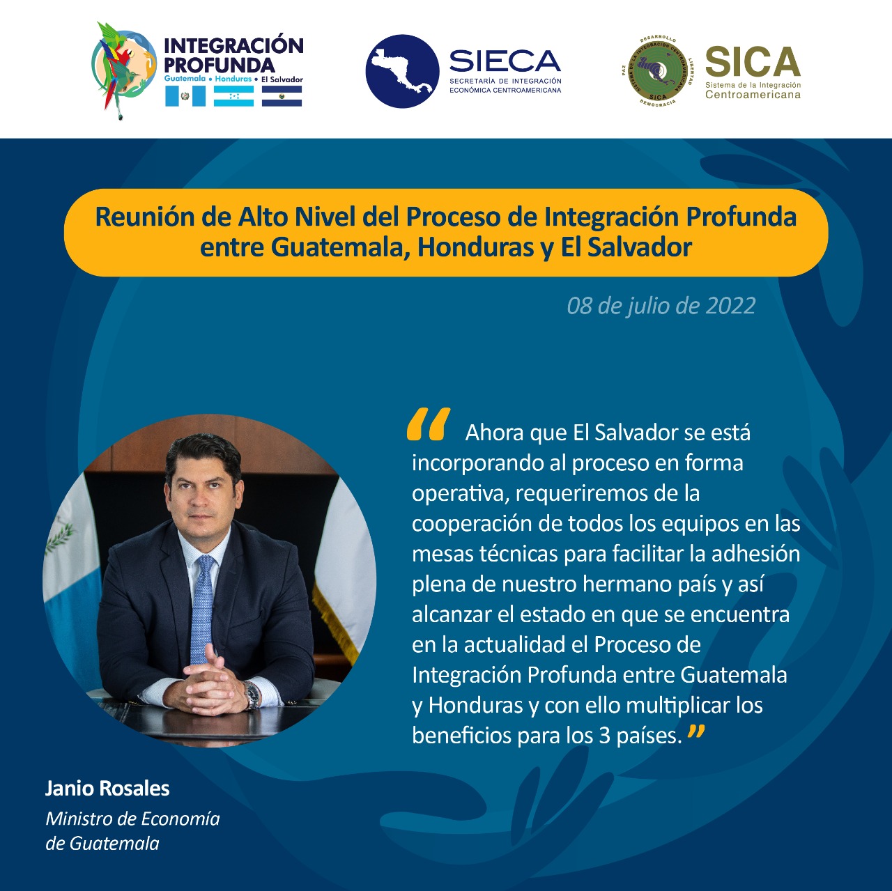 El ministro de Economía de Guatemala, Dr. Janio Rosales, expresó: "Ahora que El Salvador se está incorporando al proceso en forma operativa, requeriremos de la cooperación de todos los equipos en las mesas técnicas para facilitar la adhesión plena de nuestro hermano país y así alcanzar el estado en que se encuentra en la actualidad el Proceso de Integración Profunda entre Guatemala y Honduras y con ello multiplicar los beneficios para los tres países."