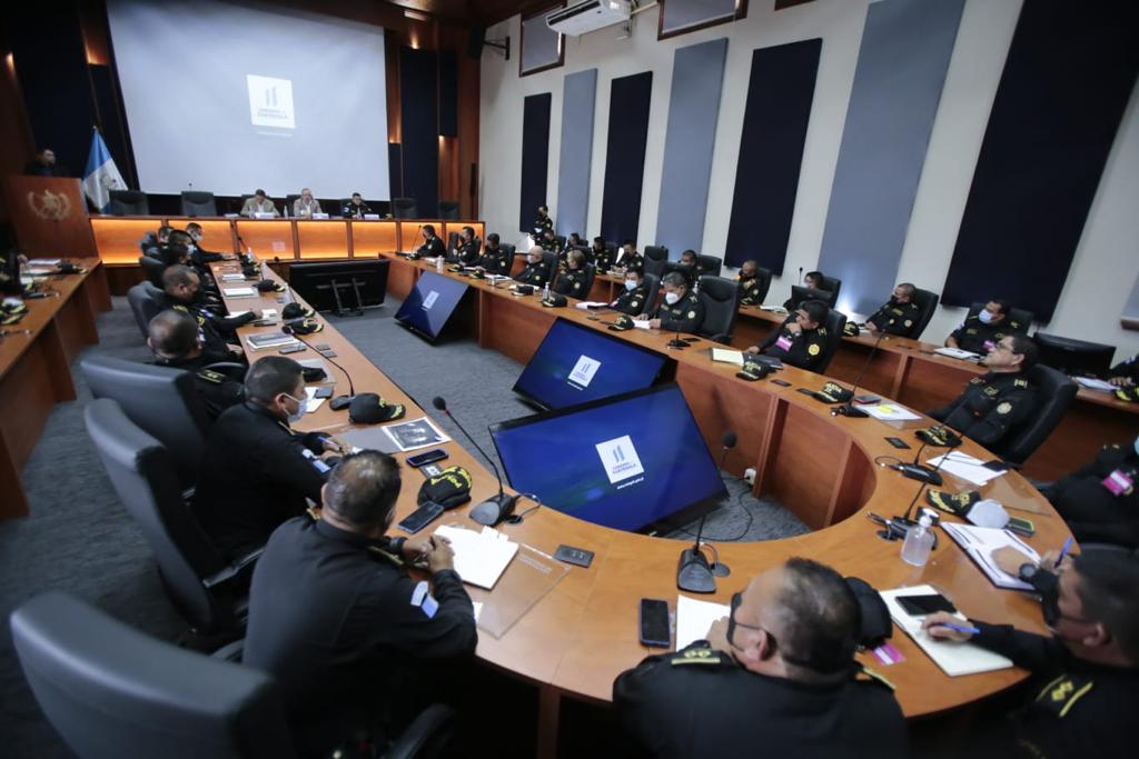 El titular de la cartera del Interior, David Napoleón Barrientos Girón, el viceministro de Seguridad, Carlos Enrique Franco Urzúa y el director General de la Policía Nacional Civil (PNC), Héctor Hernández Mendoza, se reunieron con comisarios y jefes de distritos, comisarías y divisiones, con el objetivo de abordar y planificar estrategias de seguridad y protección del trabajo periodístico, en todas sus especialidades.