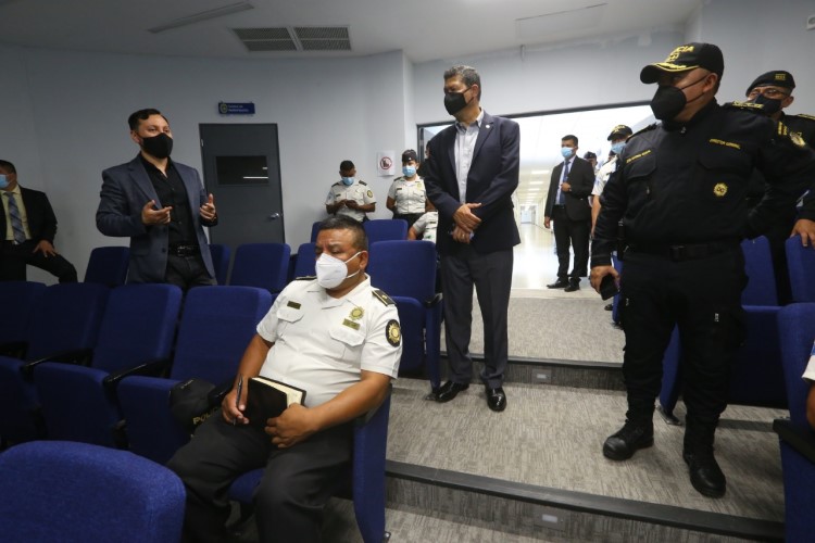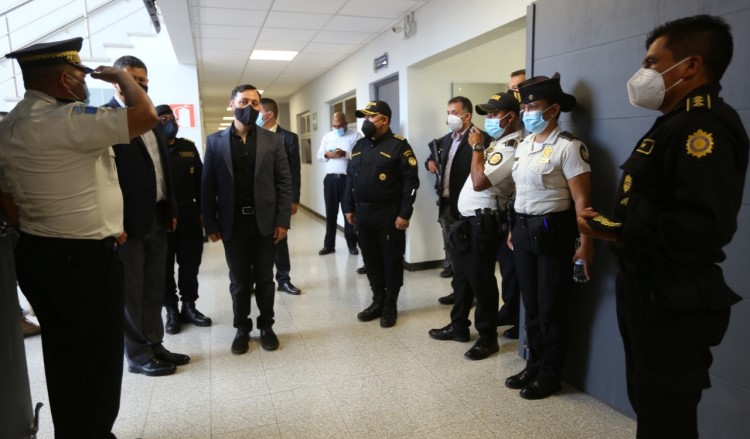 Con la finalidad de fortalecer las capacidades de actuar policial, el Ministro de Gobernación, Gendri Reyes y el Viceministro de Seguridad, Carlos Franco Urzúa, junto al Director General, José Antonio Tzuban y el Comisario Edwin Ardiano, se hicieron presentes a la Academia de la Policía Nacional Civil y Escuela de Especialidades zona 6, para mostrar su total apoyo a los aspirantes a PNC, así como motivar al personal de Fuerzas Especiales y a Mandos jefes de comisarías, sobre protocolos ante manifestaciones.