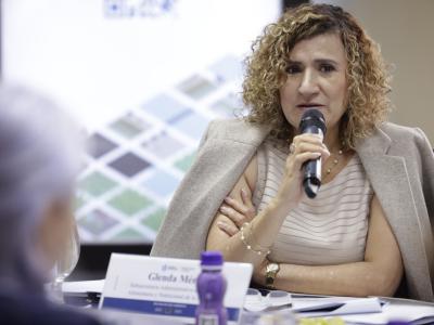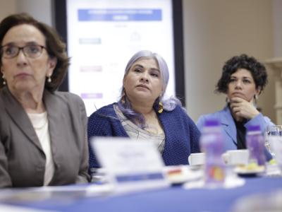 La secretaria Lizett Guzmán, junto con el subsecretario técnico, Gabriel Pérez Tuna y la subsecretaria administrativa, Glenda Mérida, informaron a sus interlocutores sobre detalles relevantes de la institución, entre ellos, avances y logros de su gestión, así como desafíos para la futura administración.