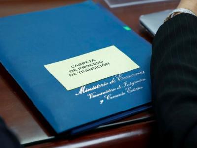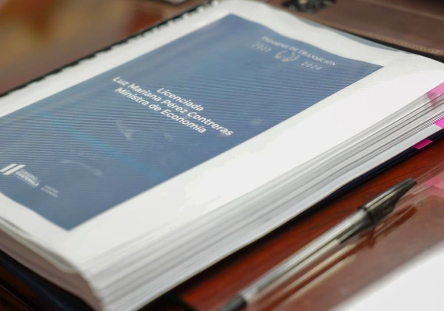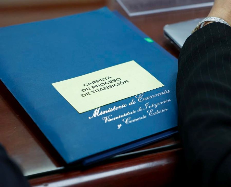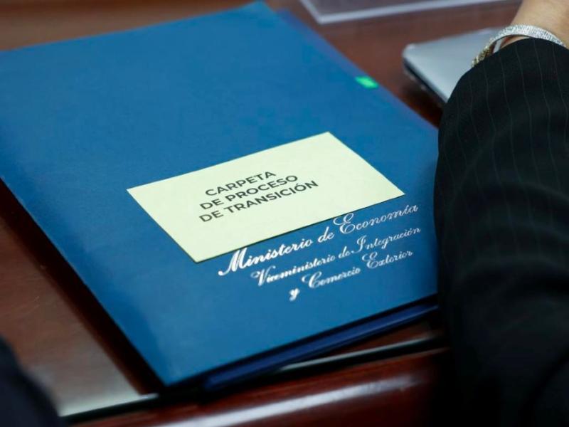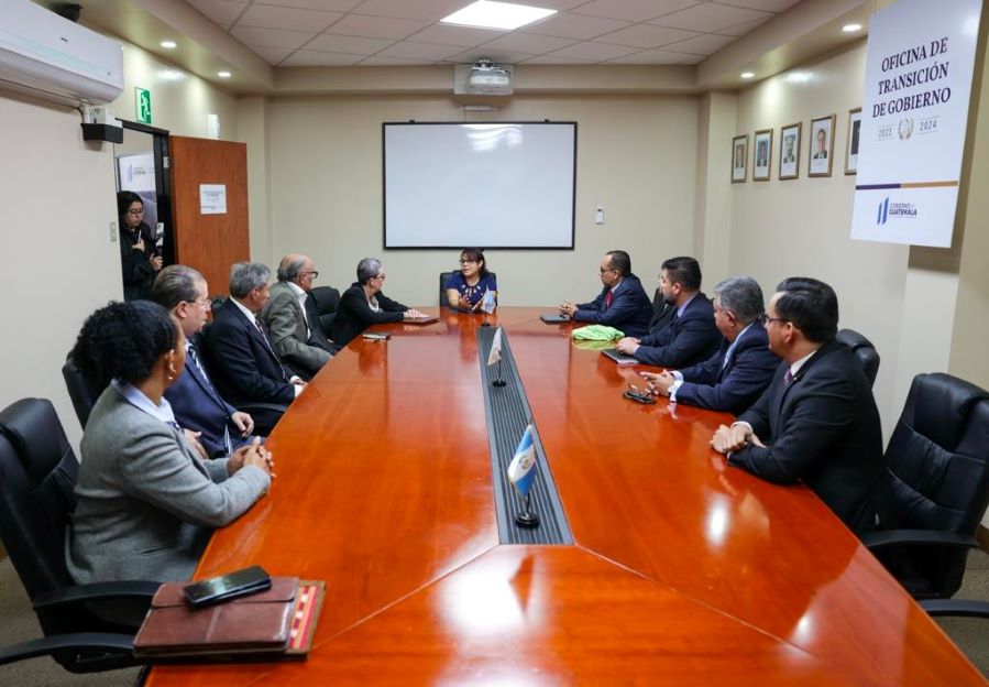 La ministra de Economía, Luz Pérez, junto a los viceministros de la cartera y la gerente general del Instituto Nacional de Estadística (INE), Brenda Izabel Miranda, sostuvieron este martes la primera reunión del proceso de transición con el equipo de trabajo designado por el gobierno electo, encabezado por la delegada, Elizabeth Ugalde.
