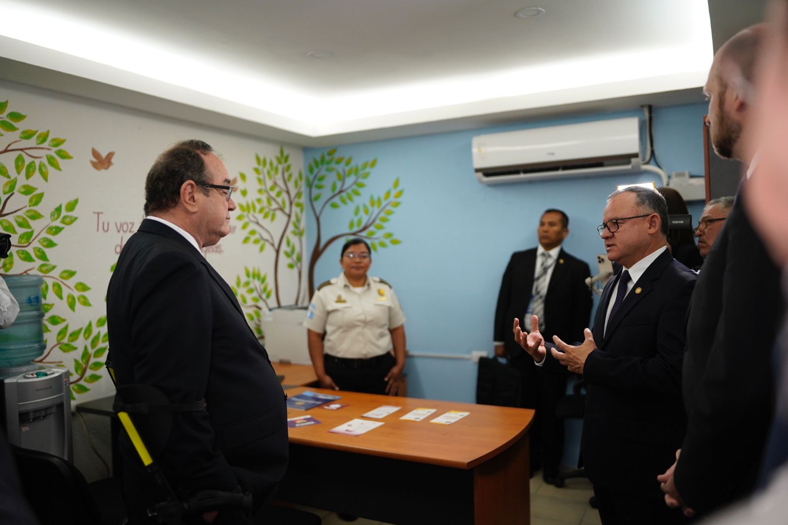 El Presidente de la República de Guatemala junto al Ministro de Gobernación, el Embajador de Estados Unidos de América, William Popp, y el Tercer Viceministro de Prevención de la Violencia y del Delito, verificaron las mejoras realizadas en la Oficina de Atención a la Víctima, ubicada en la Comisaría 14 de la Policía Nacional Civil (PNC), zona 7 capitalina. Esta visita se desarrolló en el marco del Día Internacional de la Mujer que se conmemora cada 8 de marzo.