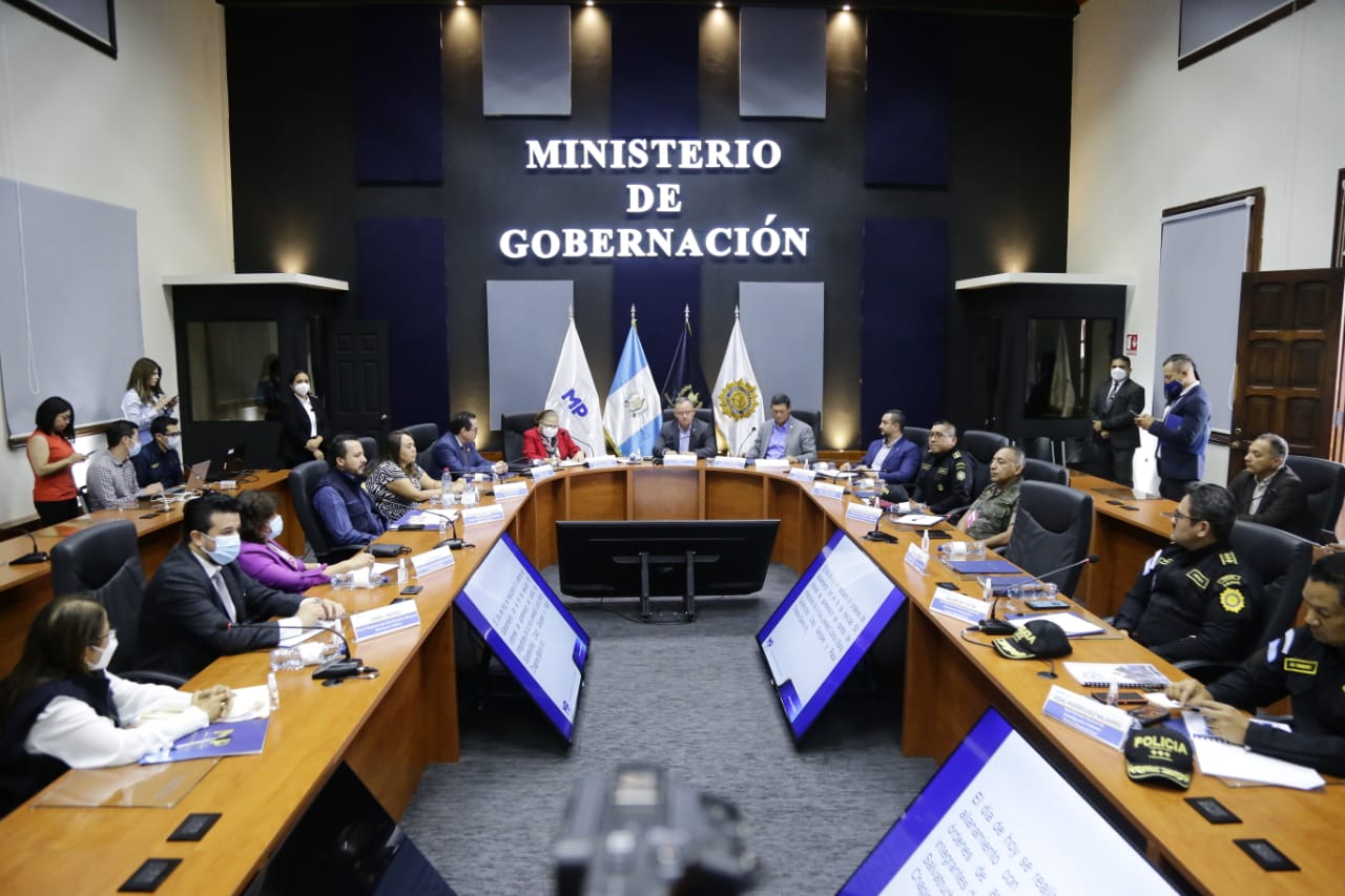 El Ministro de Gobernación, David Napoleón Barrientos, junto al Viceministro de Seguridad, Carlos Franco y de Quinto Viceministro Antinarcóticos, Fernando Rodas, en compañía de la Fiscal General y Jefe del Ministerio Público (MP), María Consuelo Porras y el Subjefe del Estado Mayor del Ministerio de la Defensa (Mindef), Ardany Bautista, informaron esta tarde sobre los resultados obtenidos en diferentes acciones conjuntas para impactar en los delitos de extorsión, sicariato y narcotráfico, entre otros.