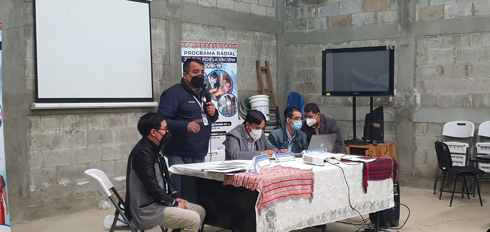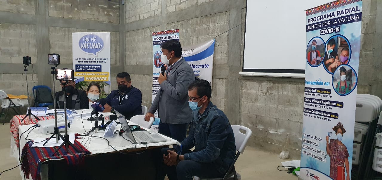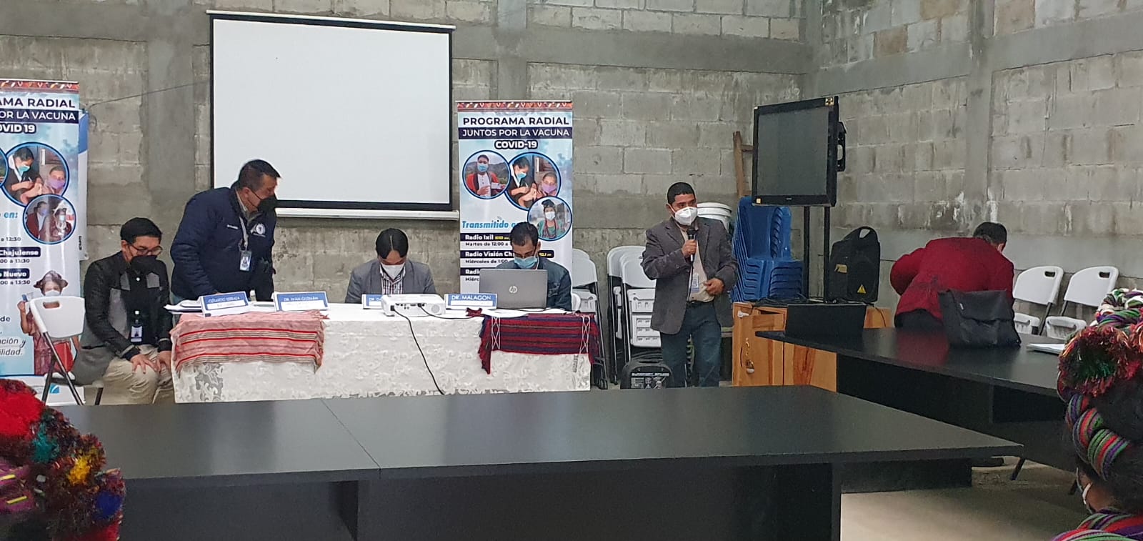 Guzmán detalló que spots radiales y televisivos, impresión de banners y mantas vinílicas, botones de vacunación y otros materiales informativos han sido impresos y distribuidos por el personal de salud en la población de la localidad, gracias al apoyo local y de la cooperación internacional, materiales cuyos mensajes han sido traducidos a k'iche y a los tres idiomas Ixiles de Nebaj, Cotzal y Chajul.