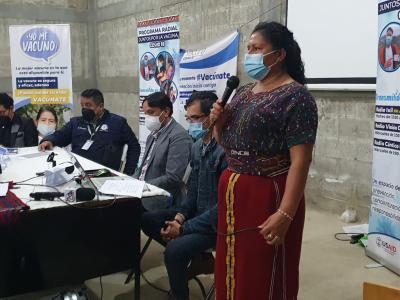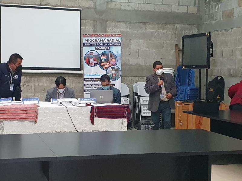 “Tenemos en nuestros servicios de salud suficientes pruebas rápidas de diagnóstico por hisopado, y también suficientes kits de tratamiento para los casos positivos y para los miembros de sus familias mayores de 12 años. Gracias por ayudarnos a hacerlo saber a nuestras comunidades”, comentó el Director ejecutivo de la Dirección del Área de Salud Ixil Iván Guzmán Escobar, durante la actividad a la que fueron convocados los medios de comunicación locales.