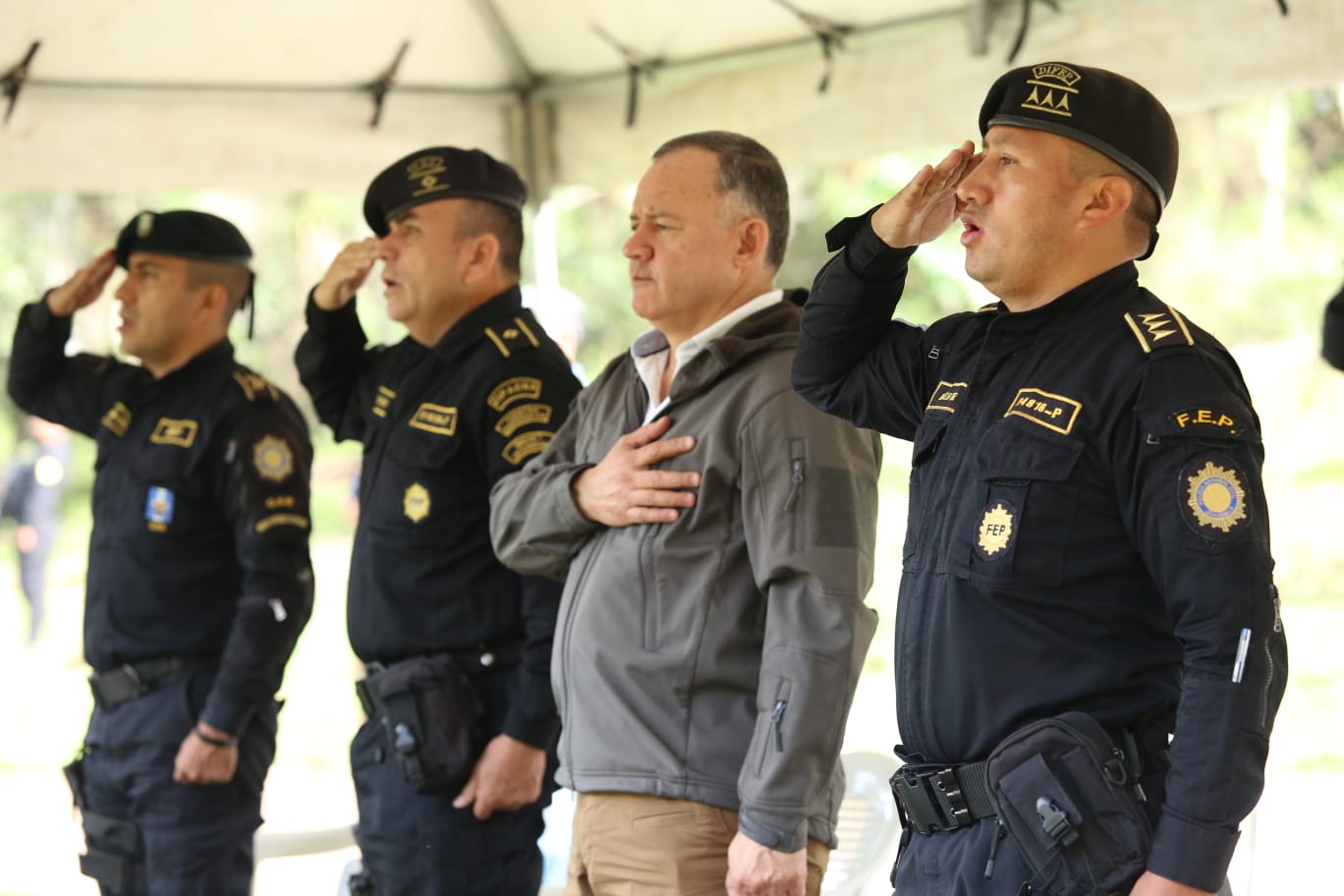 El ministro de Gobernación, David Napoleón Barrientos acompañado de mandos policiales, supervisó la formación de la 29 promoción de la División de Fuerzas Especiales de Policía (Difep) de la Policía Nacional Civil (PNC), en la finca El Violón, Canalitos, zona 24 capitalina.