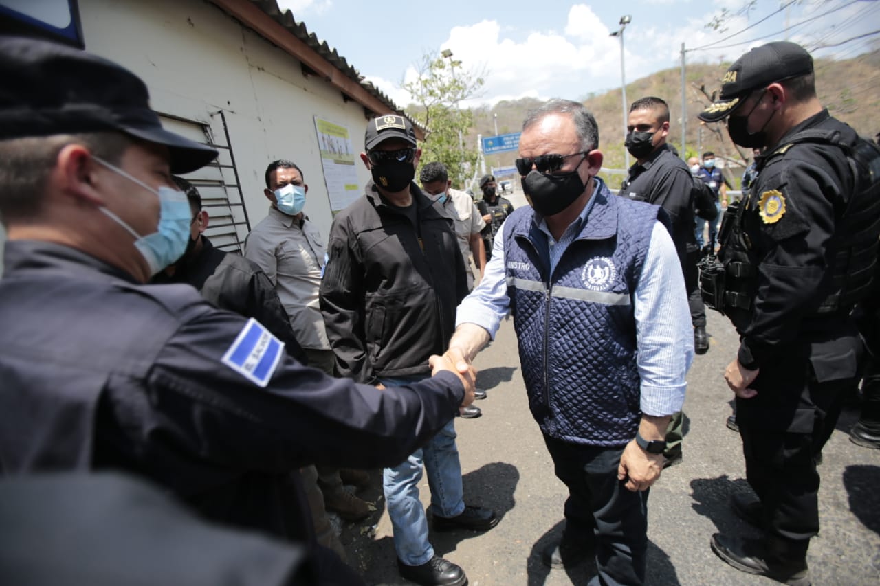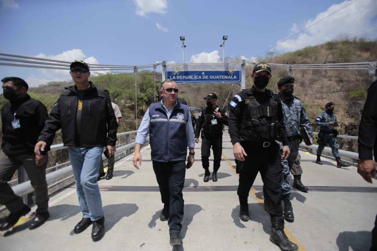 En su recorrido por el puente El Jobo, colindante con Guatemala, el ministro Barrientos y el viceministro Urzúa, dialogaron con elementos de Policía Nacional Civil del vecino país, quienes agradecieron el trabajo coordinado con la PNC guatemalteca.
