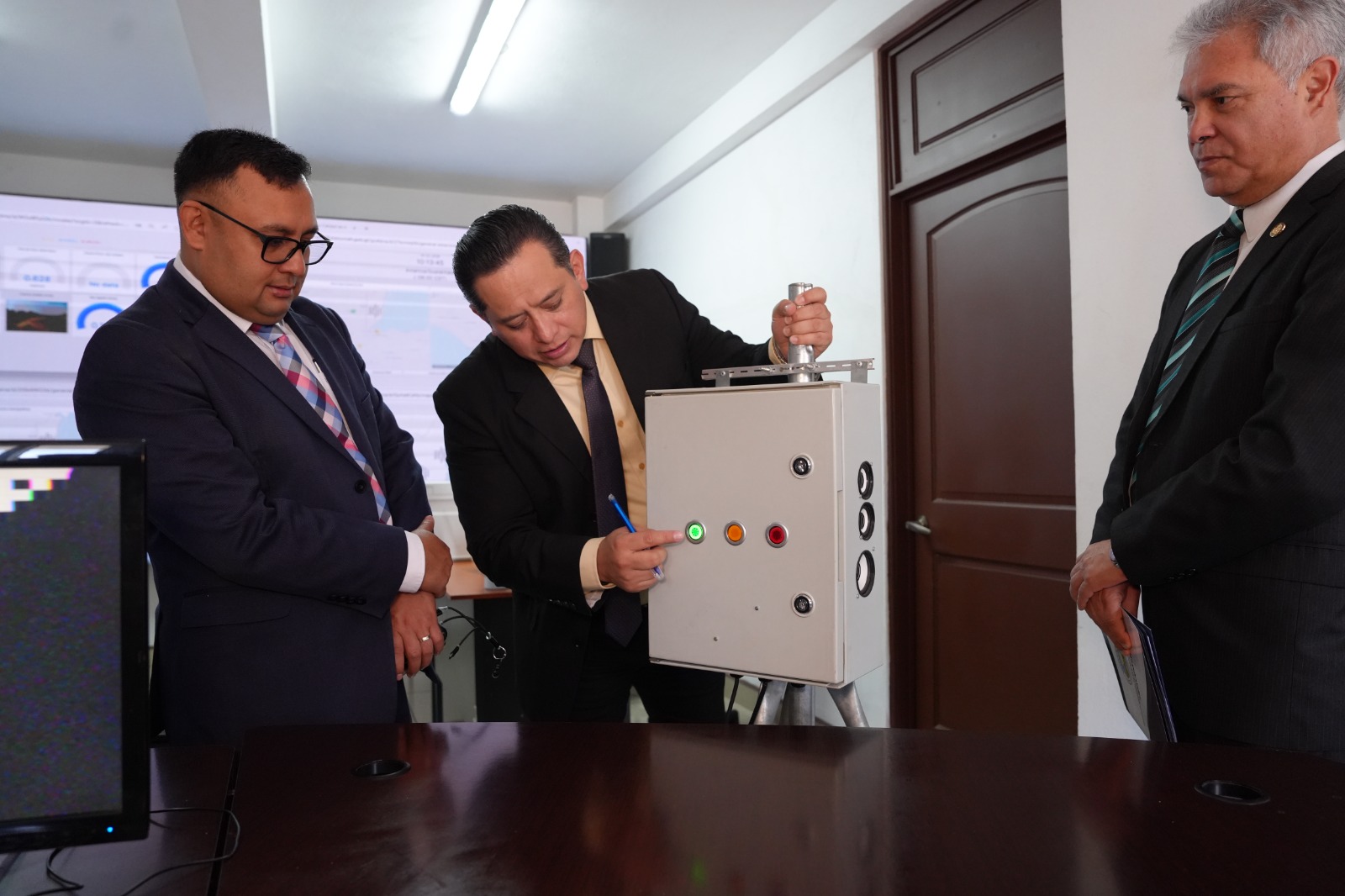El Viceministro de Transportes, Fernando Suriano, y el Viceministro de Comunicaciones, Raúl Solares, junto a sus equipos de trabajo, visitaron los centros de monitoreo del INSIVUMEH, donde se recopila y analiza la base de datos en las áreas de sismología, vulcanología, meteorología e hidrología, con el objetivo de mantener informada a la población ante cualquier fenómeno natural y fortalecer la gestión del riesgo en el territorio nacional.
