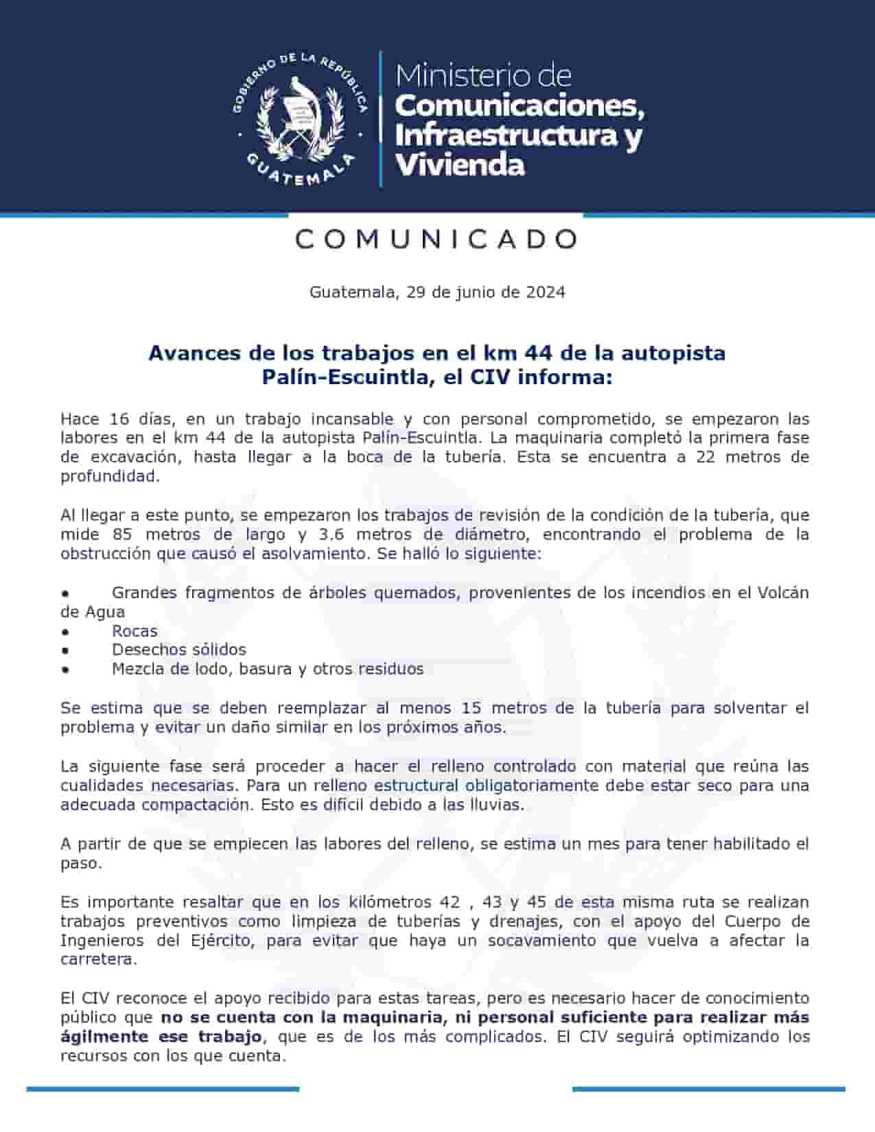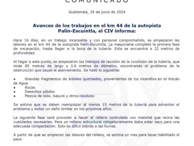 Avances de los trabajos en el km 44 de la autopista Palín-Escuintla, el CIV informa:
