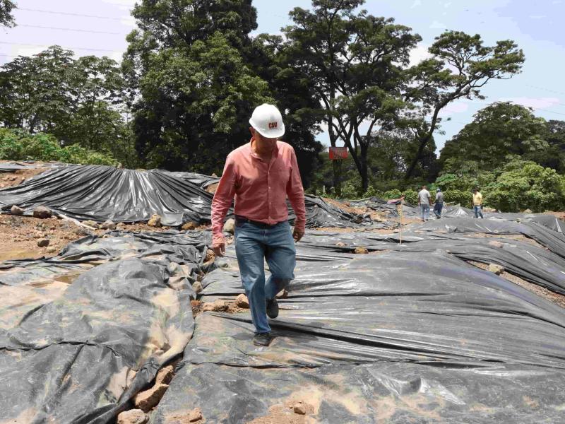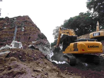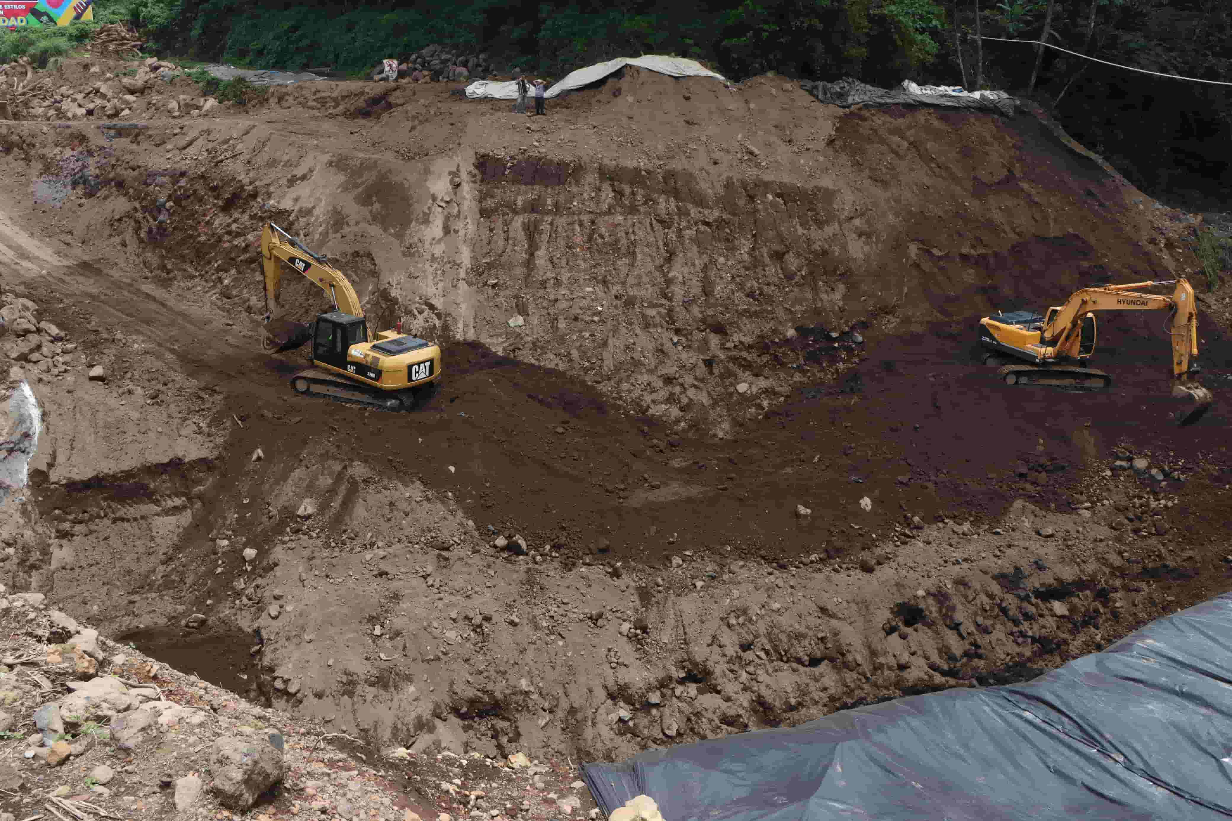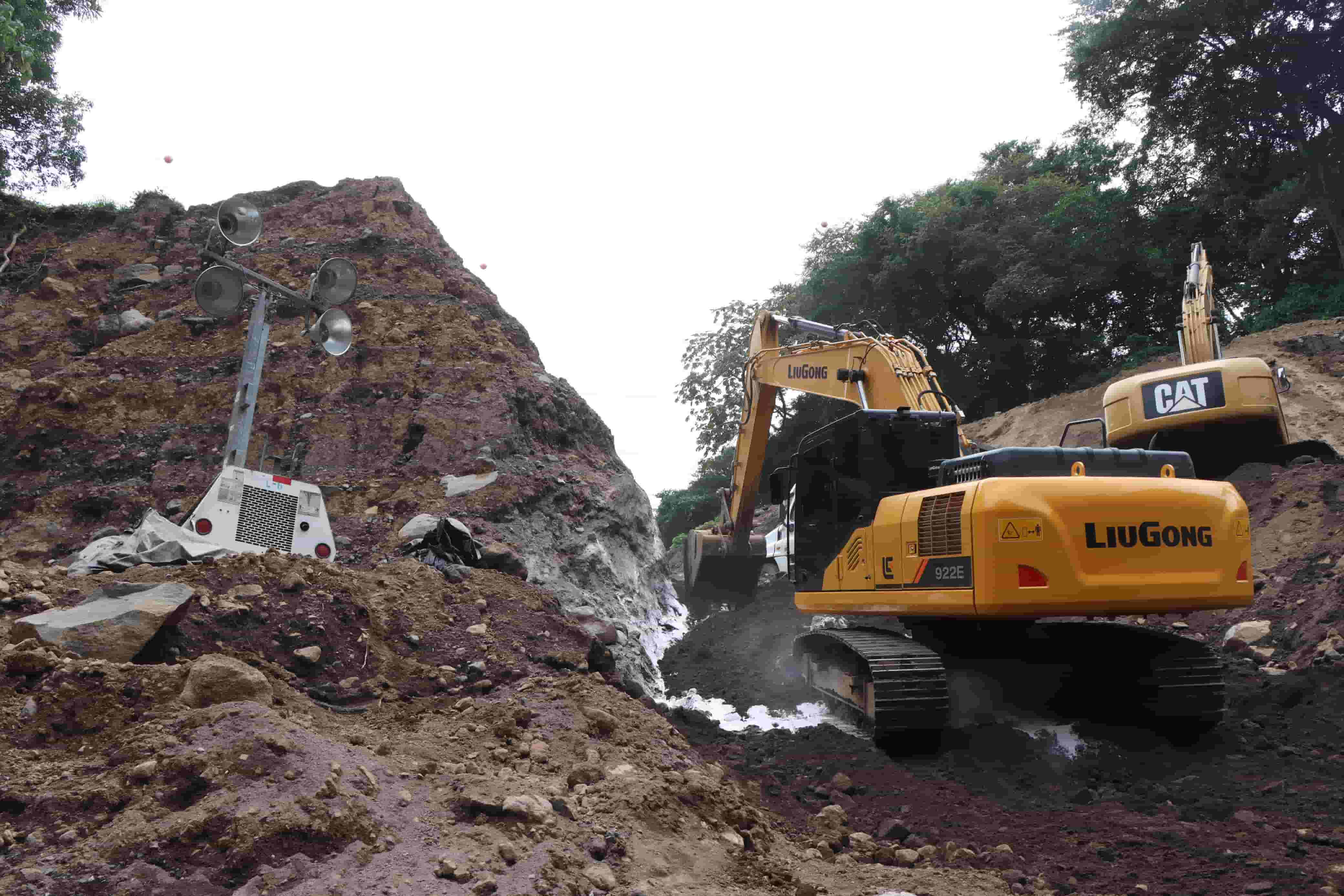 En el lugar operan 4 excavadoras de 20 y 30 toneladas encargadas de retirar el material contaminado o saturado, para luego colocar el relleno necesario en los costados de las tuberías ya instaladas. También se hace la limpieza y colocación de una segunda tubería transversal. Al finalizar el relleno del tramo hasta la altura del pavimento se podrán habilitar dos carriles.