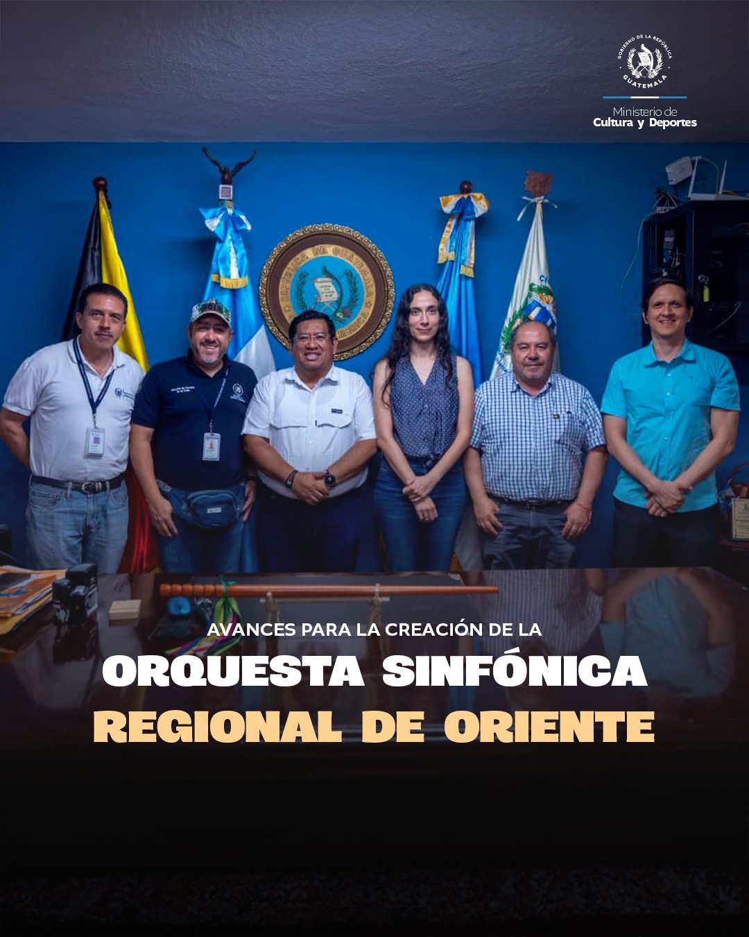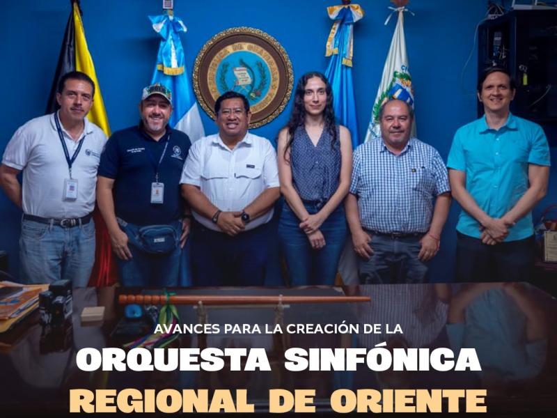 El director de Fomento de las Artes, Fernando Archila, junto a un equipo técnico, sostuvo reuniones con autoridades de Chiquimula, entre ellas el alcalde René Pinto y el gobernador departamental Luis Alberto Compá, para brindar detalles sobre la creación de esta nueva orquesta.