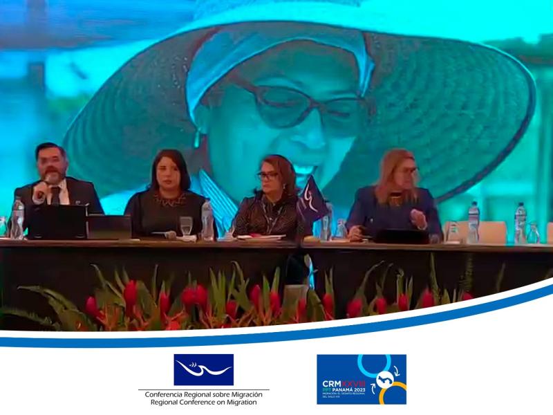 La representante de la Secretaría Presidencial de la Mujer Mónica Monroy como parte de la delegación guatemalteca, junto a la Cónsul de Guatemala en Mcallen, Texas María del Rosario Ovando Castro, participan en el espacio de Países Miembros de la CRM en el V Congreso Regional sobre Mujeres en los contextos de la migración, denominado “La migración tiene rostro de mujer: por el respeto y la integridad de sus derechos”.