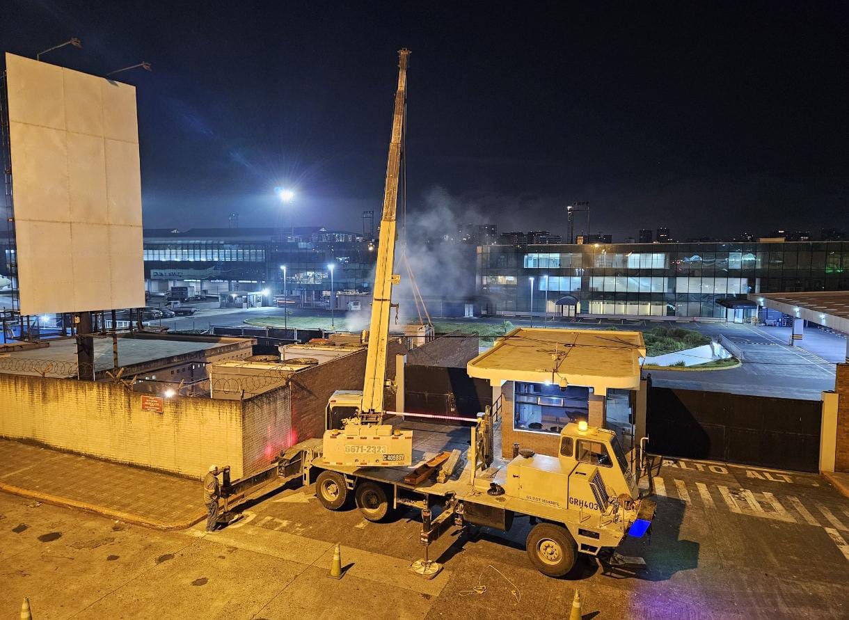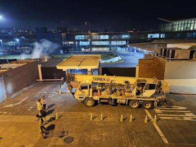 Este jueves, la empresa Electromecánica Centroamericana inició el retiro de las antiguas torres de enfriamiento, dando paso a la instalación de nuevas unidades de mayor capacidad y eficiencia, que serán esenciales para optimizar el sistema de climatización de las terminales aeroportuarias.