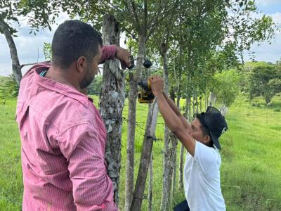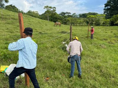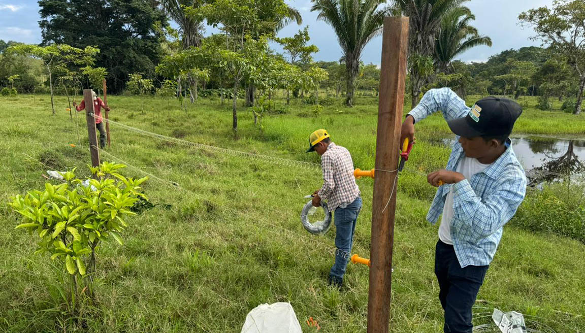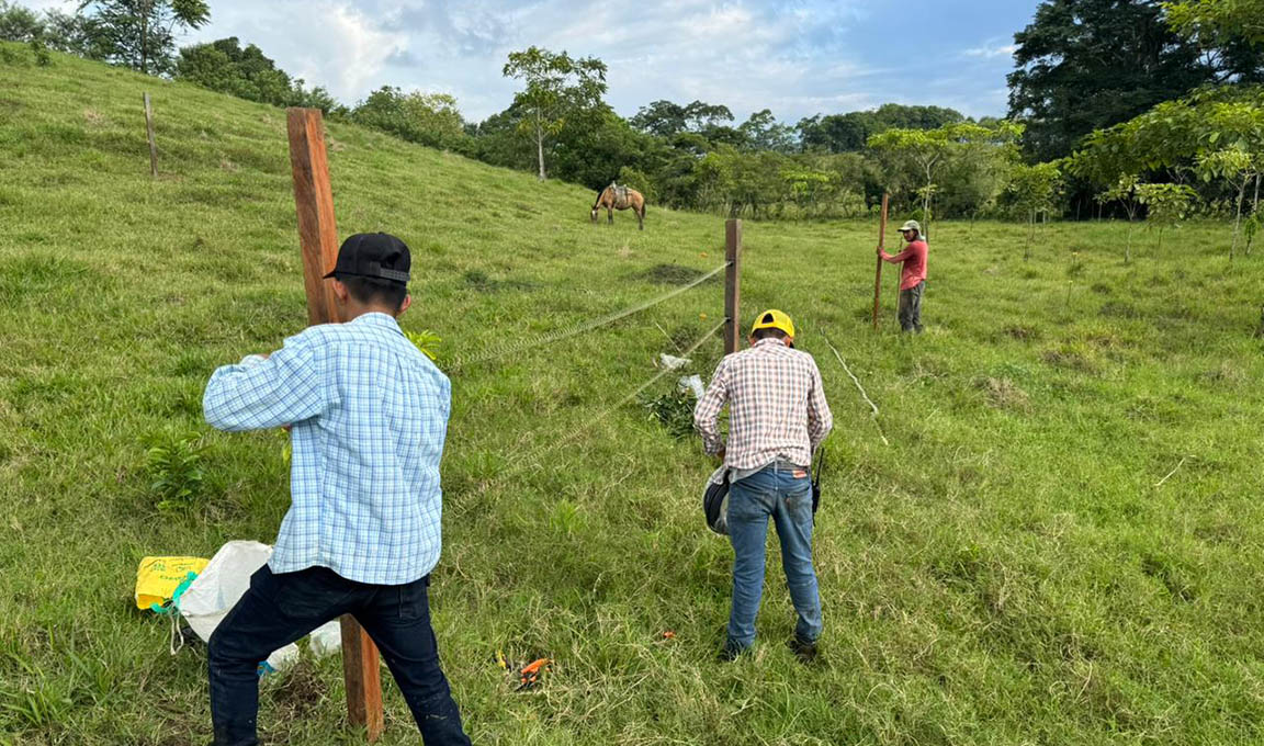 En la fase actual, y de acuerdo con los planes de manejo elaborados con los productores, se incorpora la instalación de cercas eléctricas en fincas seleccionadas. Esta herramienta facilita el control del pastoreo, evita el ingreso del ganado a zonas sensibles y permite una rotación más eficiente de los potreros. Ello contribuye con el ordenamiento del territorio productivo y a la reducción de prácticas que históricamente han favorecido la expansión hacia áreas boscosas.
