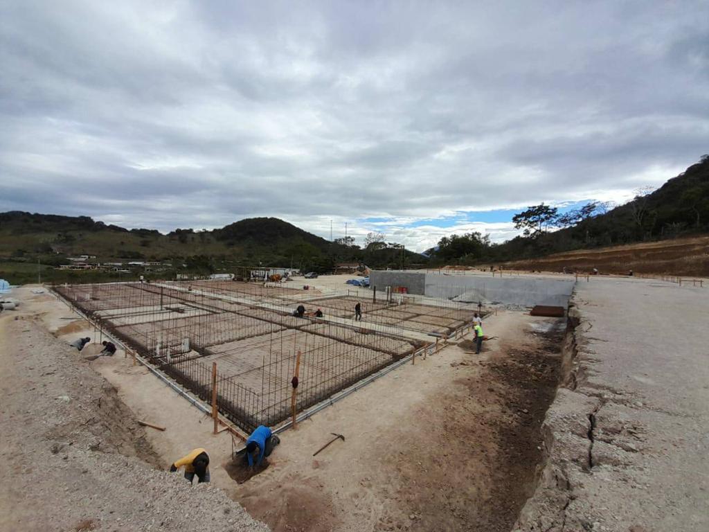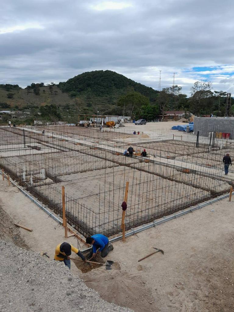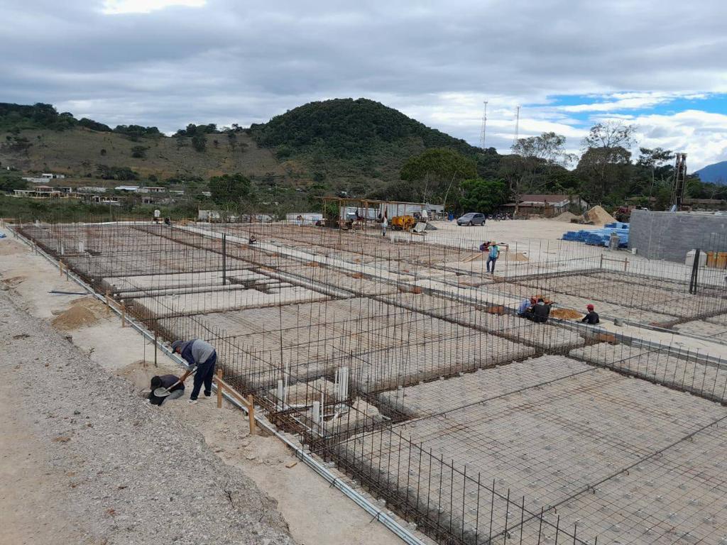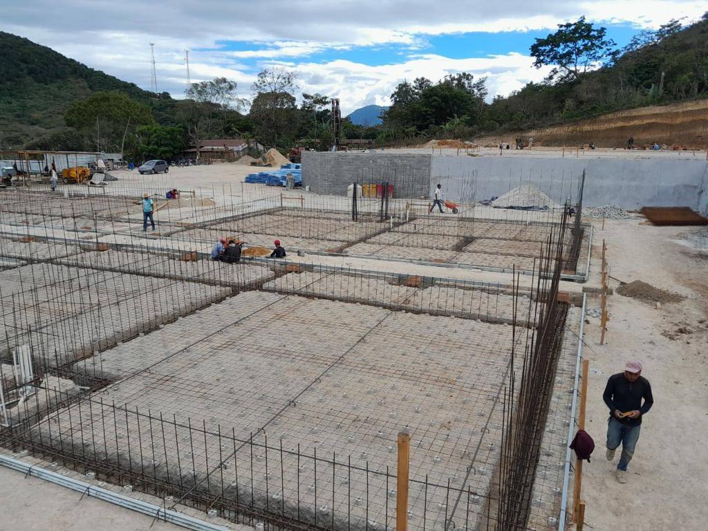Actualmente se lleva un avance físico de 55.04%, en donde se ha realizado movimientos de tierras (corte y relleno de plataformas), muros de contención, estabilización de taludes, cimentación y levantado de muros.