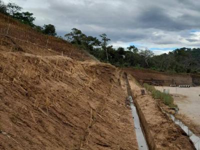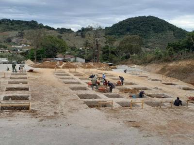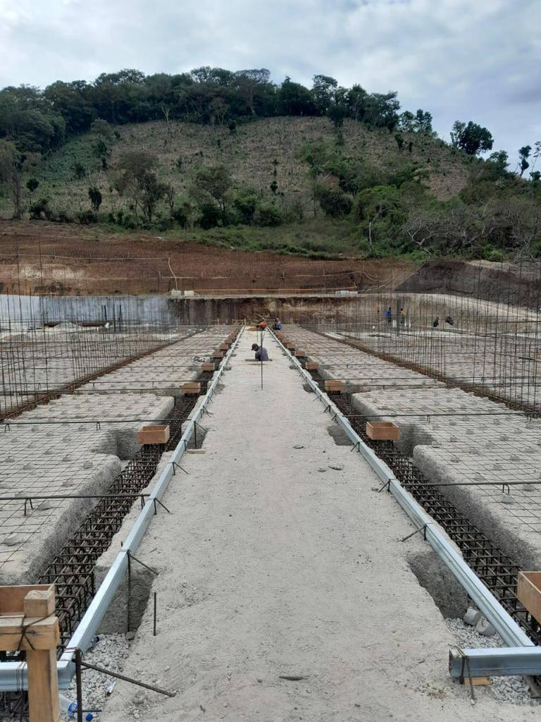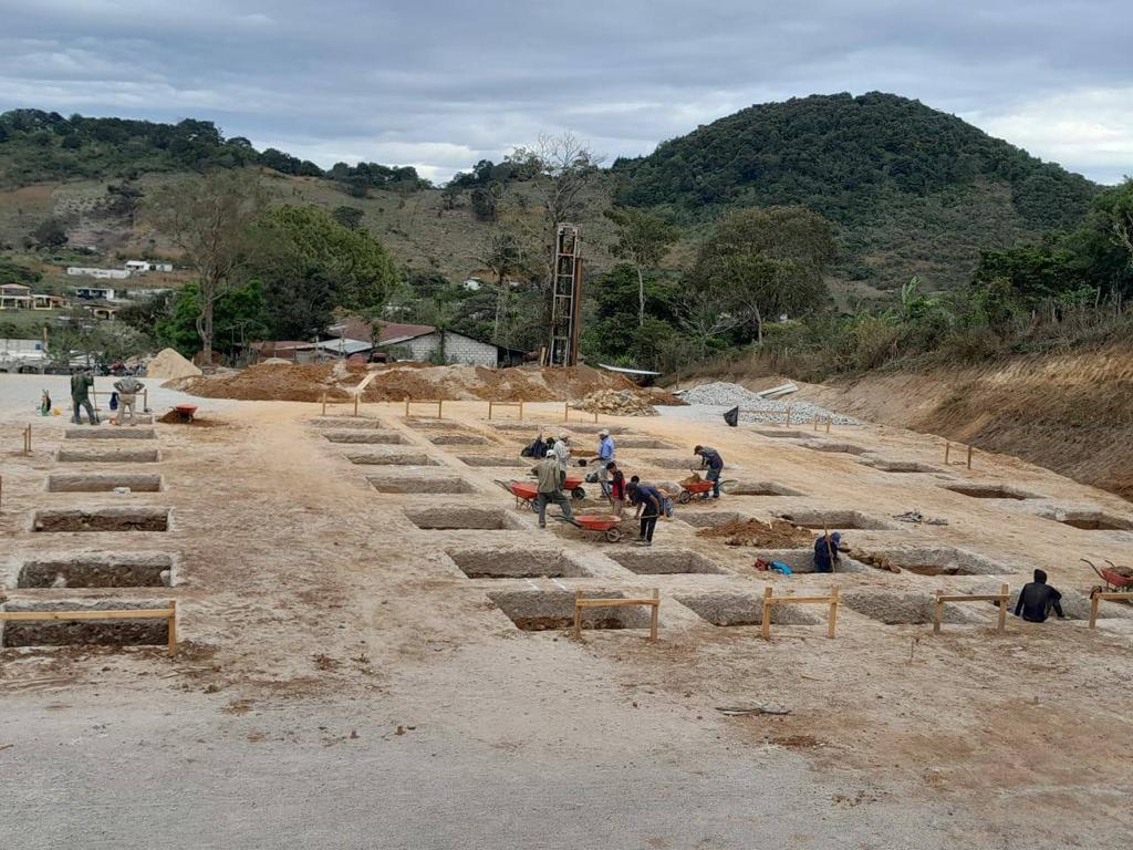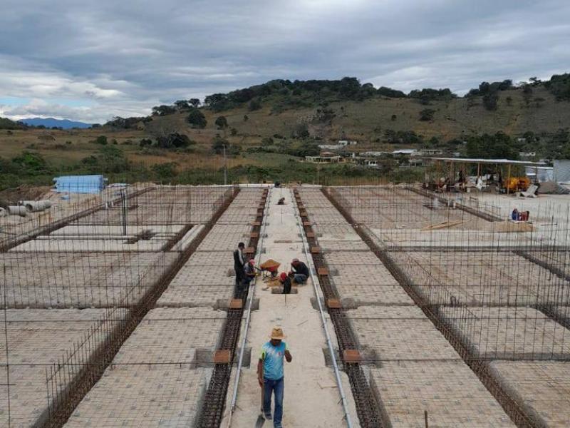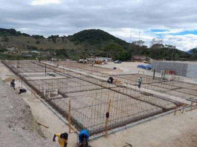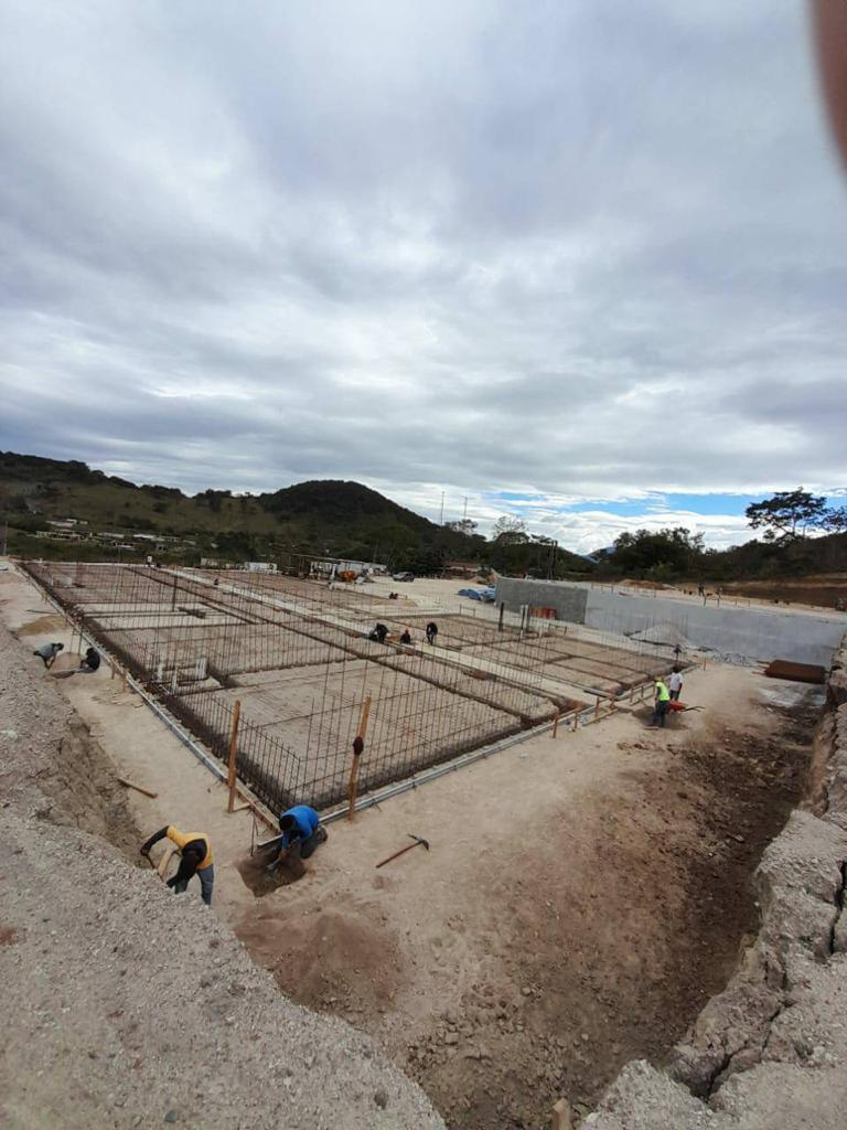 Actualmente se lleva un avance físico de 55.04%, en donde se ha realizado movimientos de tierras (corte y relleno de plataformas), muros de contención, estabilización de taludes, cimentación y levantado de muros.