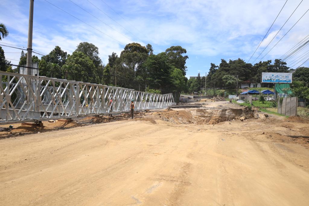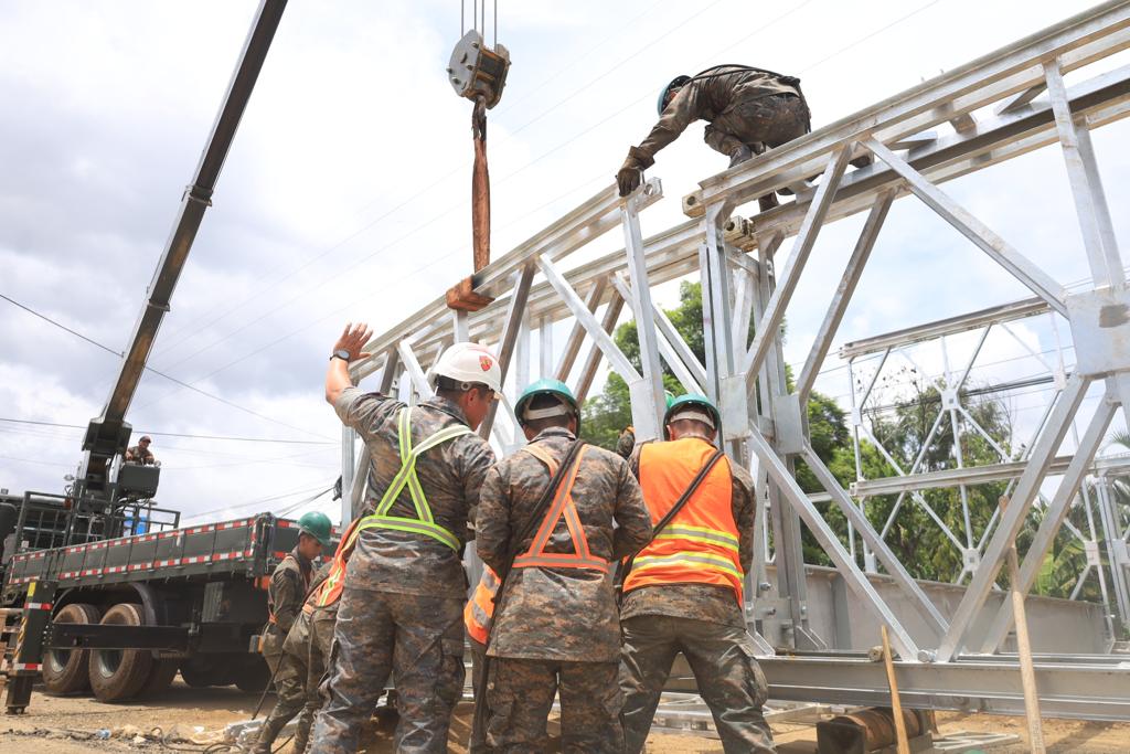 En ese sentido se informó que para este miércoles 9 de agosto se tiene un avance del 52 por cierto en el ensamblaje del puente modular que será colocado en el área afectada; el Cuerpo de Ingenieros del Ejército de Guatemala se encuentra trabajando las 24 horas para que a finales de la presente semana dicho puente ya esté funcionando.