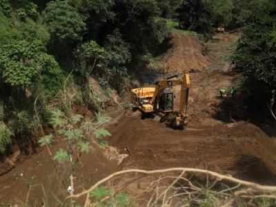 Cumpliendo con las instrucciones giradas por el Presidente Dr. Alejandro Giammattei, el Ministerio de Comunicaciones, Infraestructura y Vivienda -CIV- y el Ministerio de la Defensa Nacional -MINDEF-, continúan con los trabajos de recuperación de la ruta, en el kilómetro 17.5 de la CA-09 Sur.