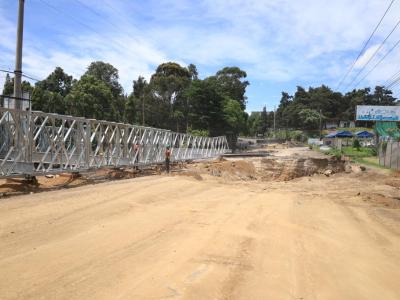 Avanza la instalación de puente modular en Villa Nueva, el mismo forma parte de las acciones que realiza el CIV y MINDEF ante la emergencia suscitada en el kilómetro 17.5 de la CA-09 Sur.