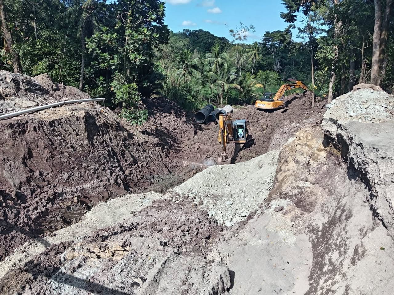 En el kilómetro 281 de la ruta CA-13 continúan los trabajos para recuperar uno de los tramos más importantes de conexión entre Izabal y Petén. En el lugar se realizan excavaciones y el armado de nuevas tuberías transversales, una intervención clave para mejorar el drenaje y evitar daños que, con el tiempo, podrían afectar seriamente la carretera.